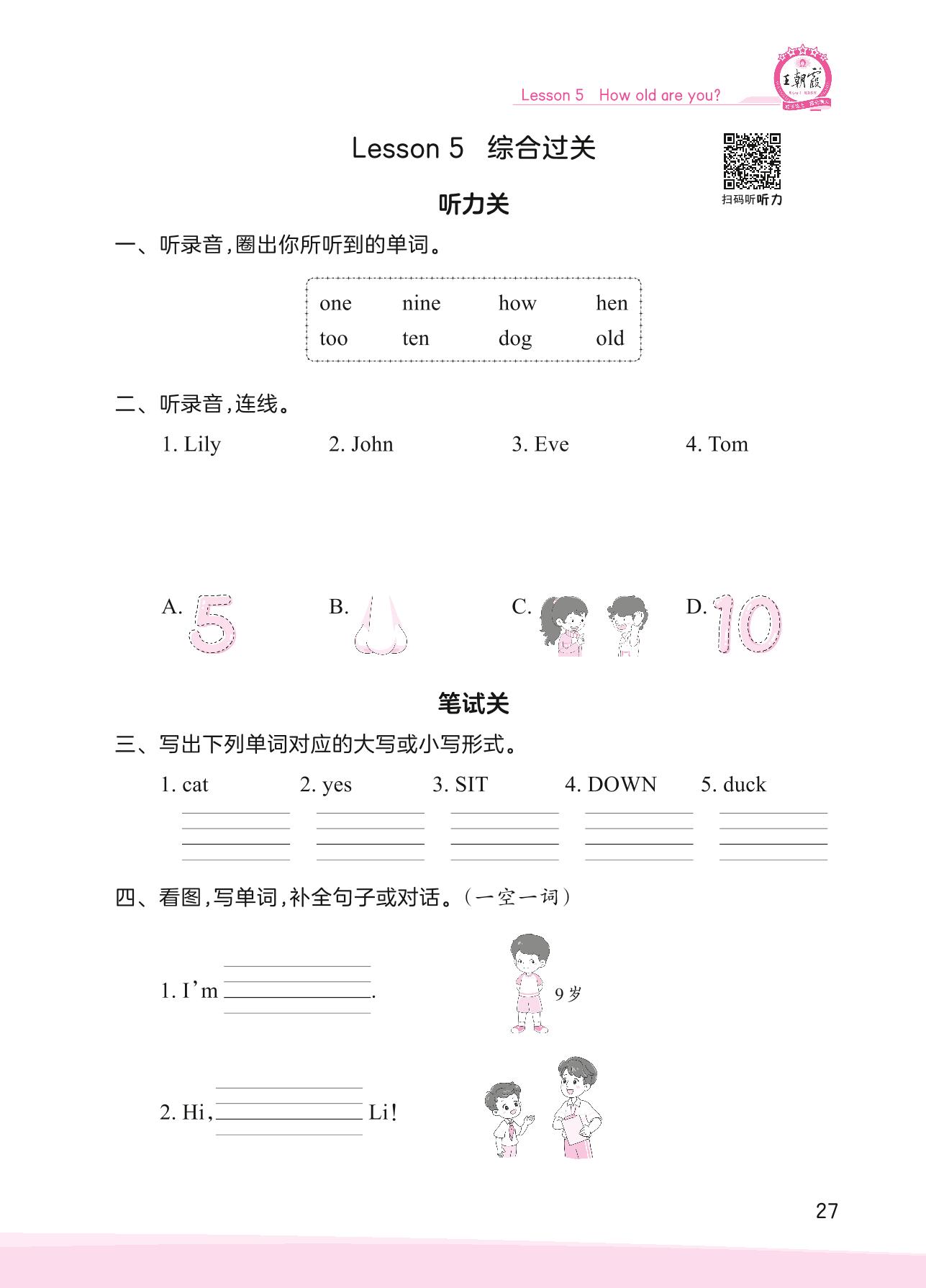 2023上册三年级英语科普版 Lesson 5 综合过关