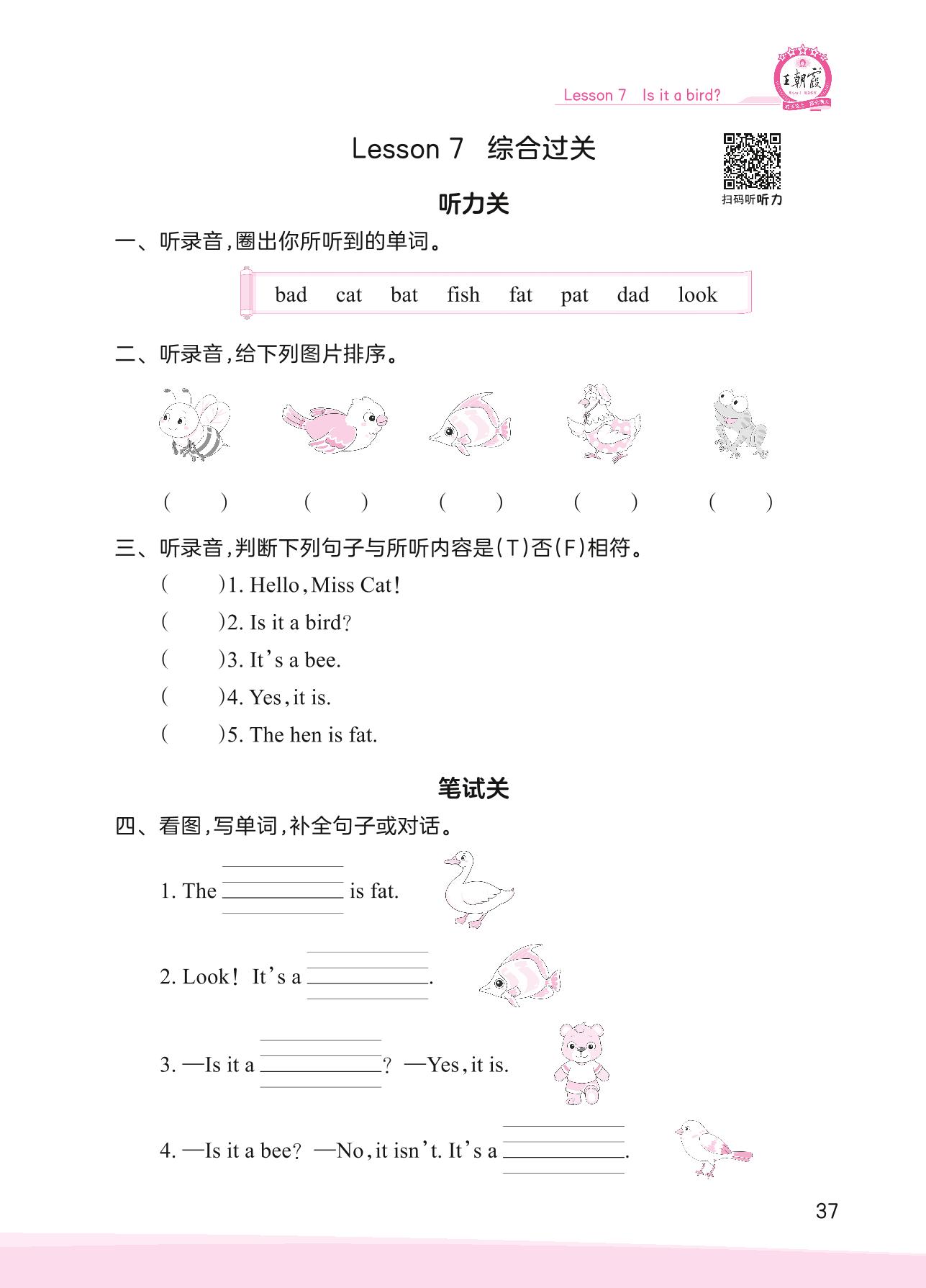 2023上册三年级英语科普版 Lesson 7 综合过关