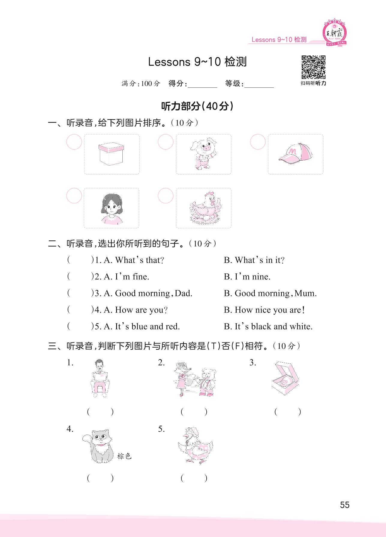 2023上册三年级英语科普版 Lessons 9~10 检测