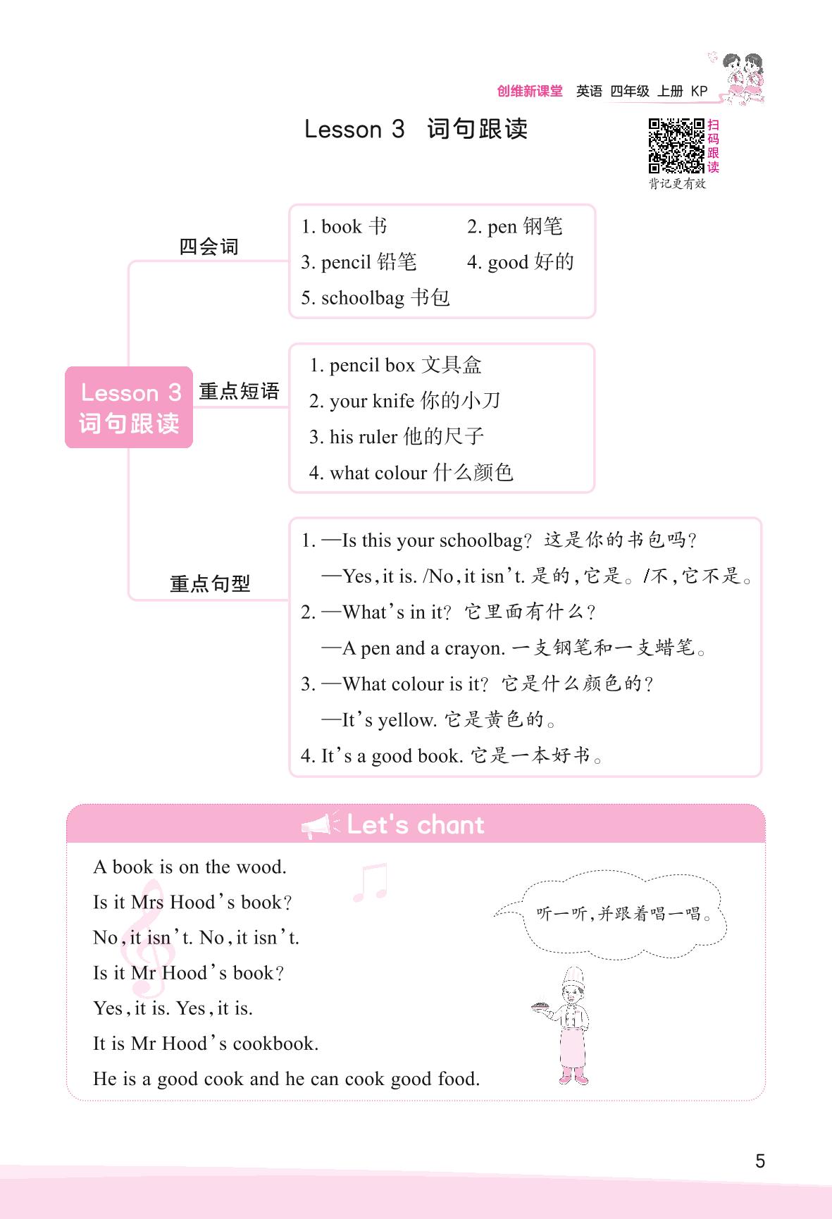 2023上册四年级英语科普版 Lesson 3 词句跟读