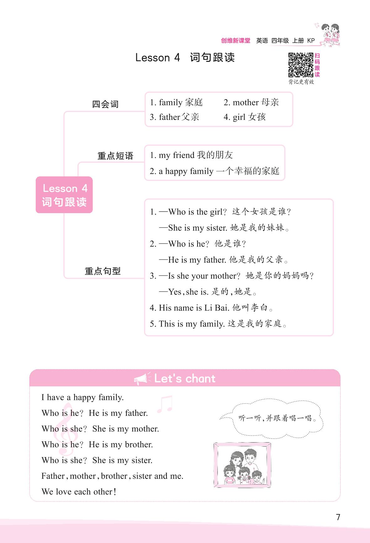 2023上册四年级英语科普版 Lesson 4 词句跟读