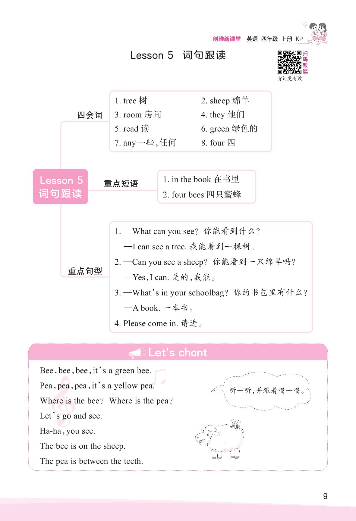 2023上册四年级英语科普版 Lesson 5 词句跟读