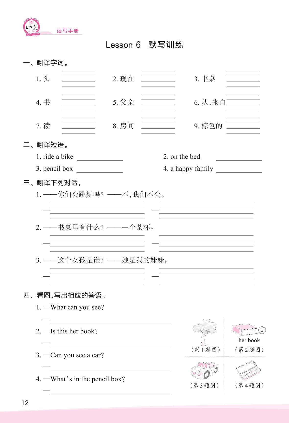 2023上册四年级英语科普版 Lesson 6 默写训练