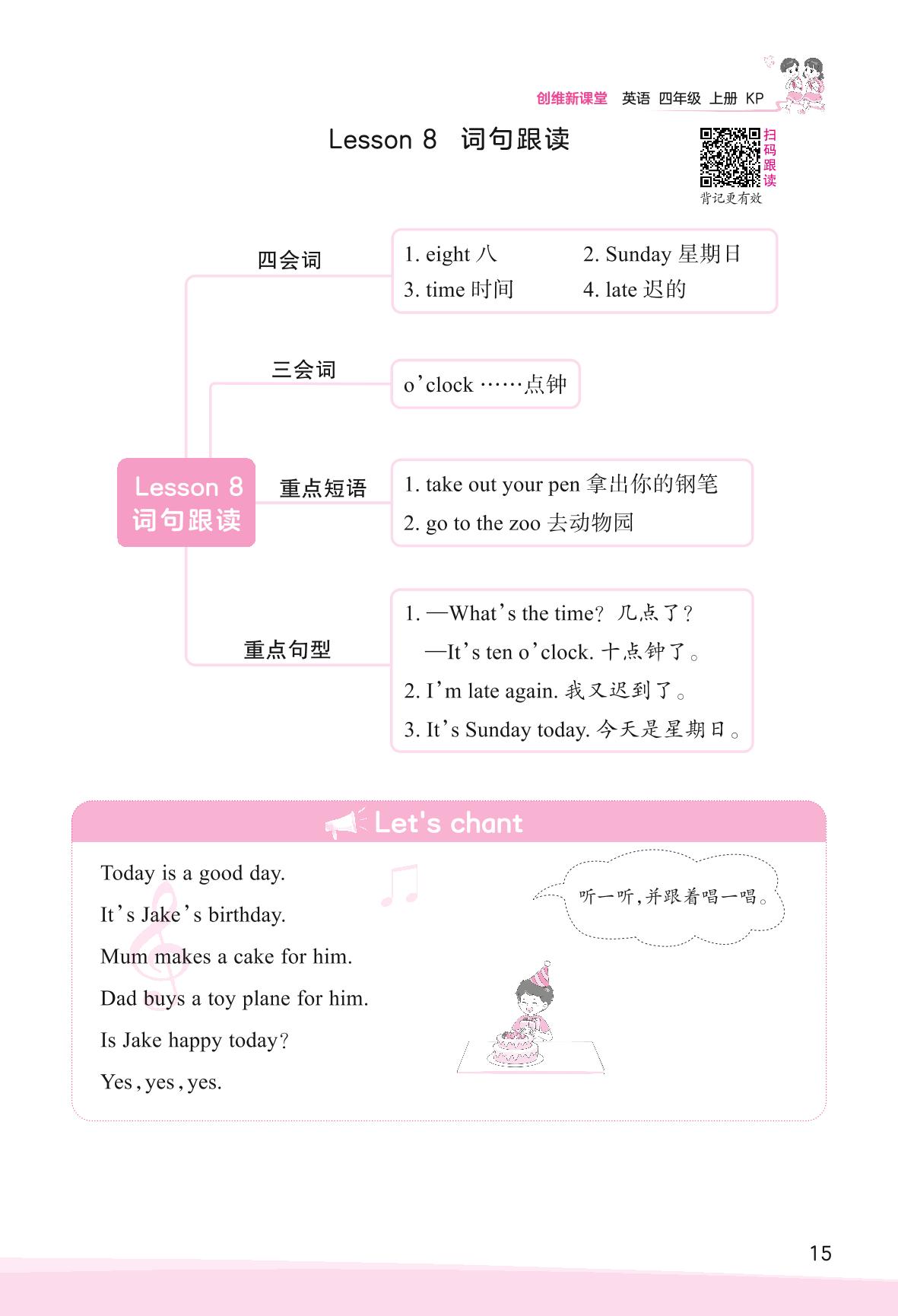 2023上册四年级英语科普版 Lesson 8 词句跟读