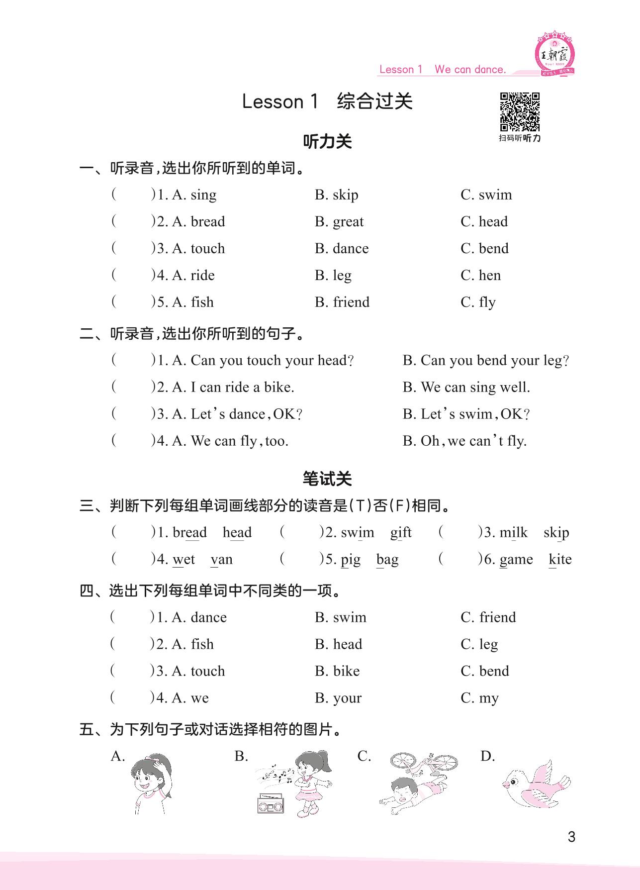 2023上册四年级英语科普版 Lesson 1 综合过关