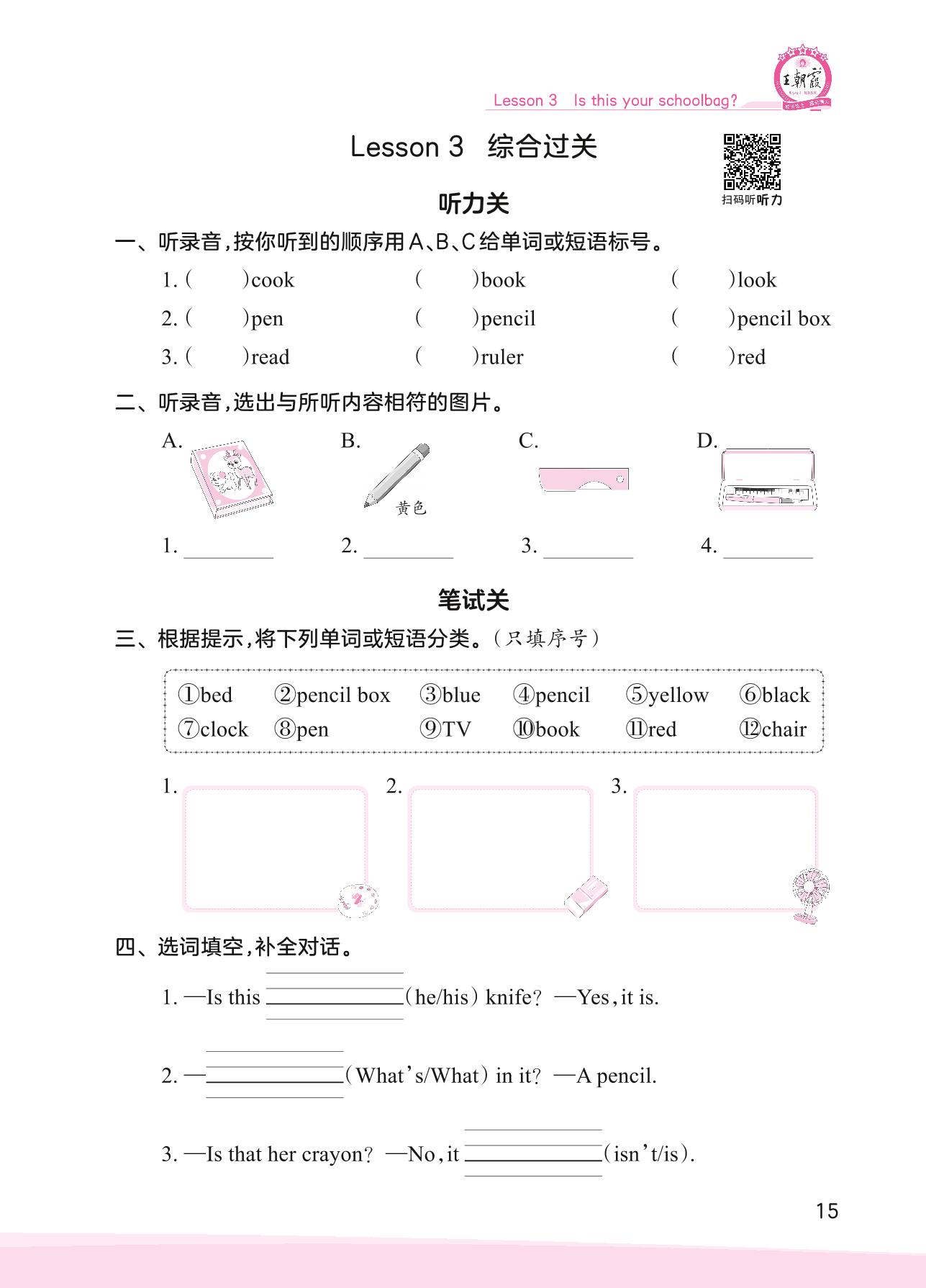 2023上册四年级英语科普版 Lesson 3 综合过关