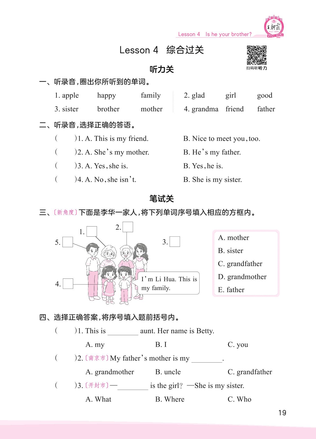 2023上册四年级英语科普版 Lesson 4 综合过关