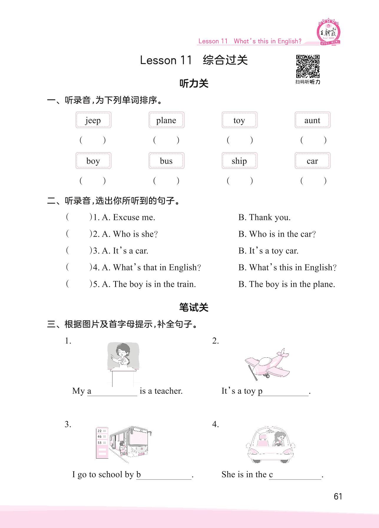 2023上册四年级英语科普版 Lesson 11 综合过关