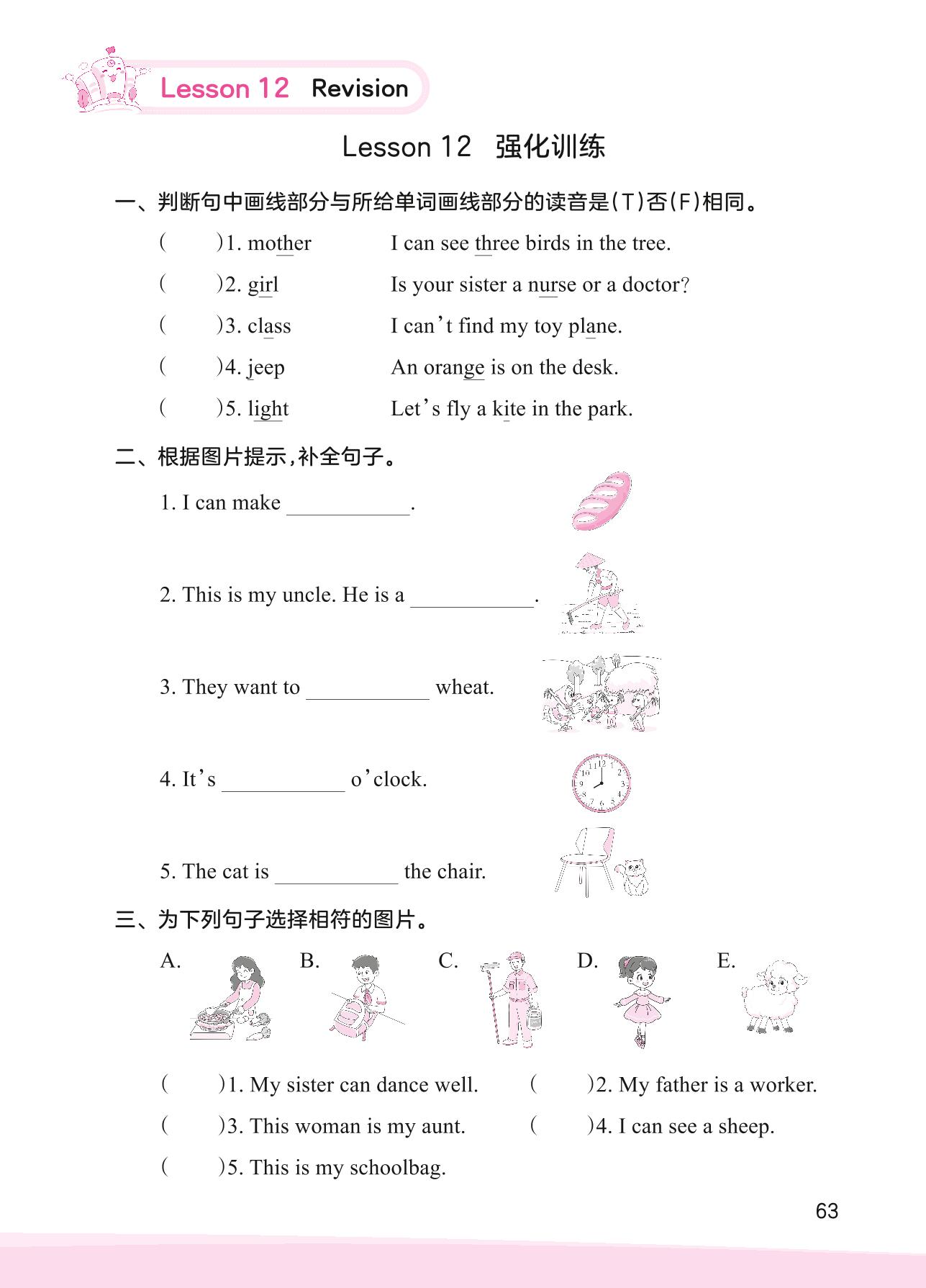 2023上册四年级英语科普版 Lesson 12 强化训练