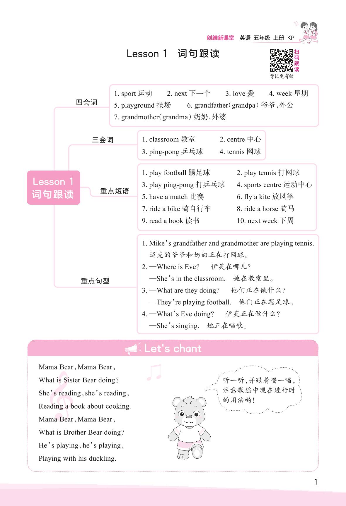 2023上册五年级英语科普版 Lesson 1 词句跟读