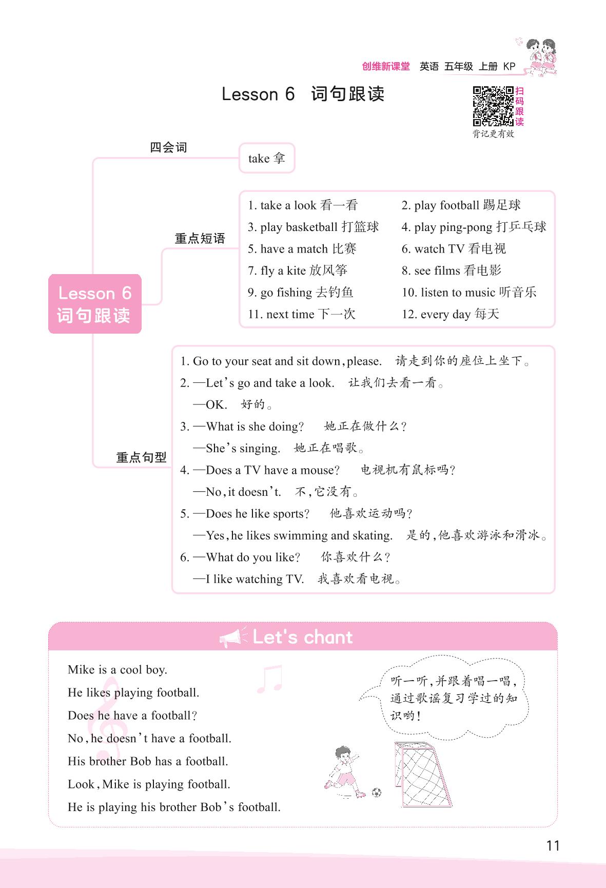 2023上册五年级英语科普版 Lesson 6 词句跟读