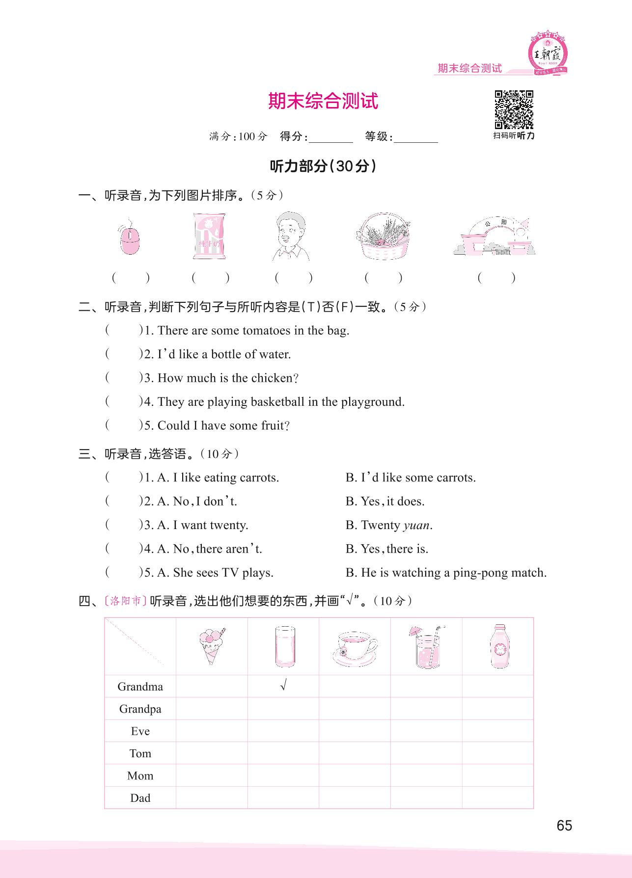 五年级英语科普版上册期末卷