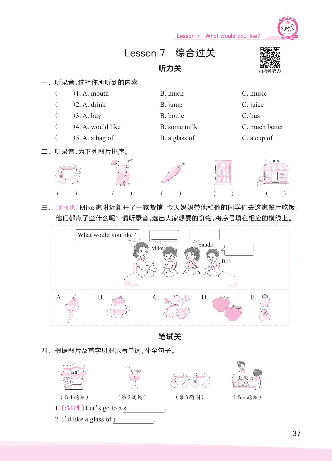 2023上册五年级英语科普版 Lesson 7 综合过关