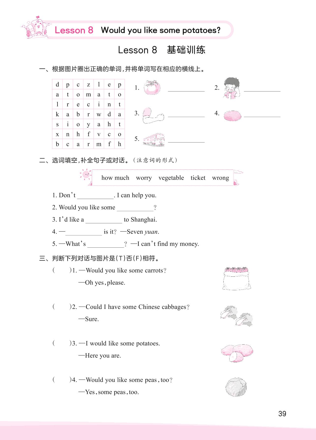 2023上册五年级英语科普版 Lesson 8 基础训练