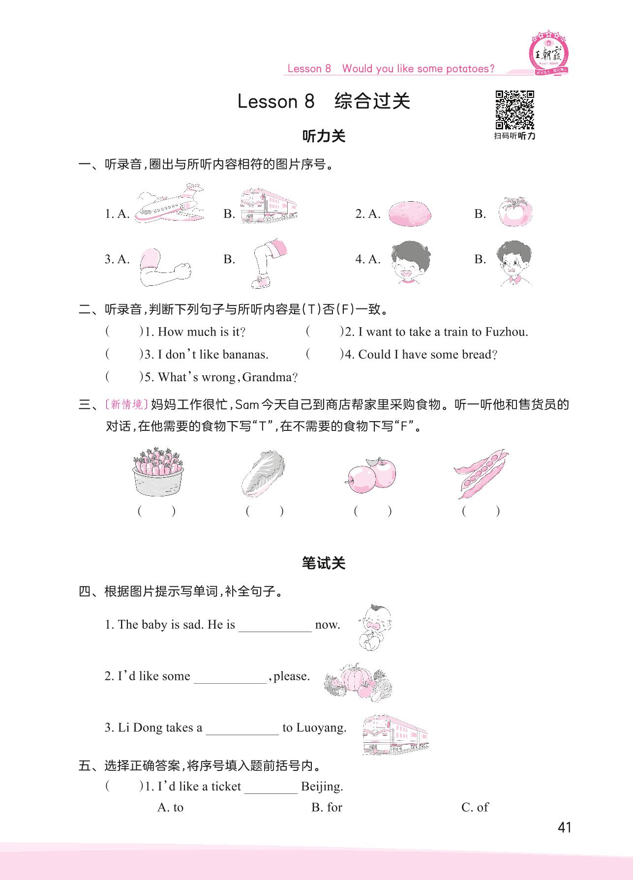 2023上册五年级英语科普版 Lesson 8 综合过关