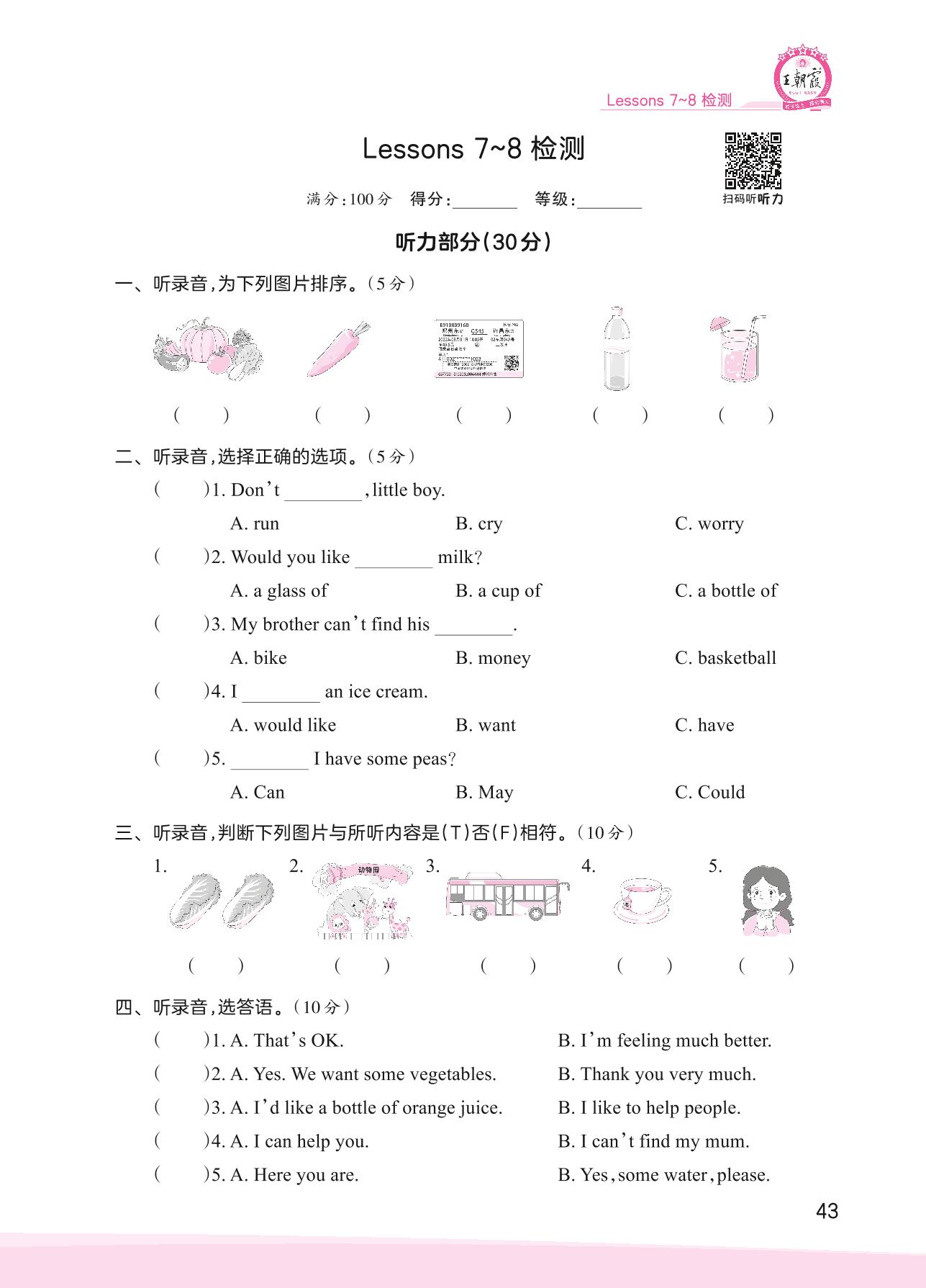 2023上册五年级英语科普版 Lessons 7~8 检测