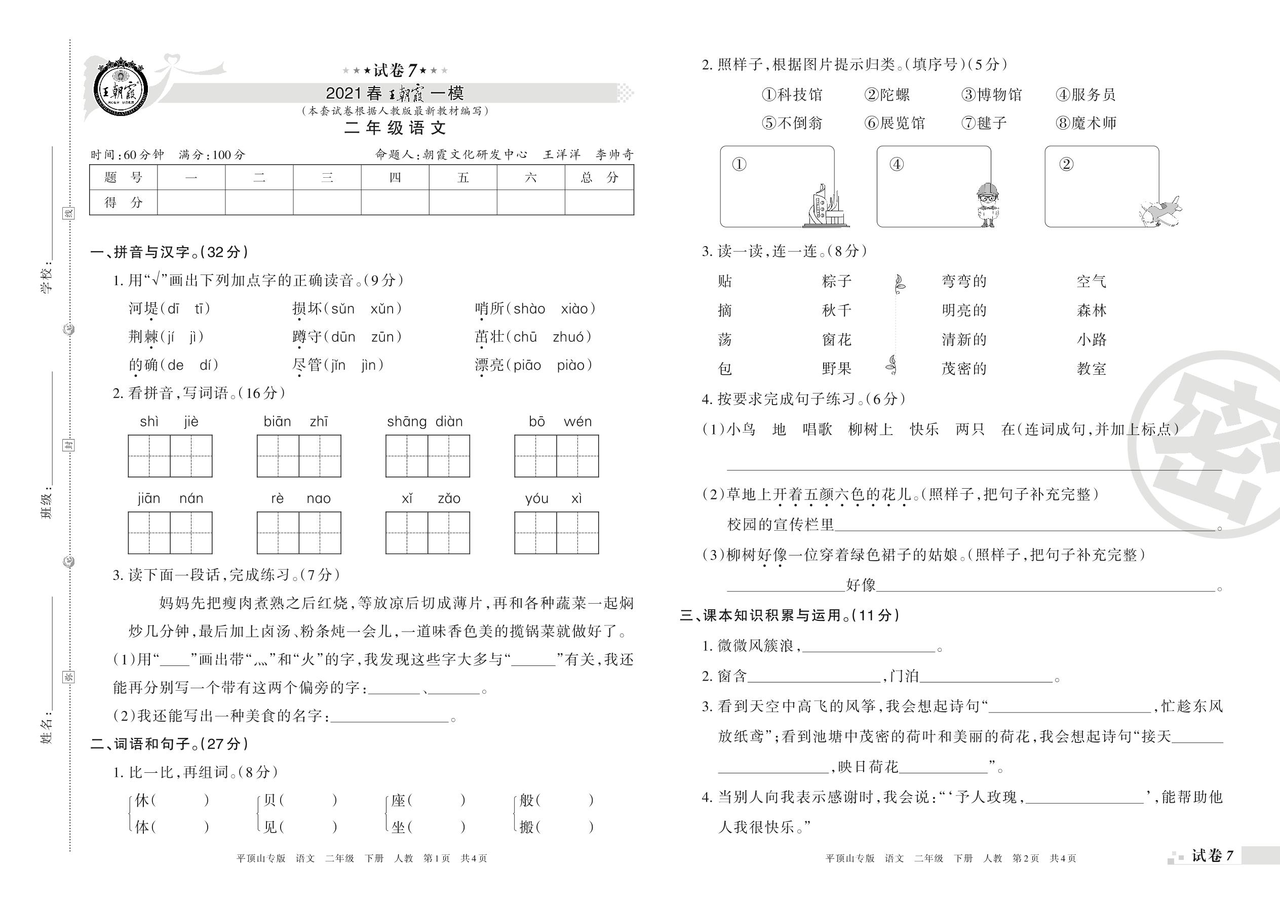 王朝霞期末模拟卷二年级下册语文(人教版)_R21080163342【7】