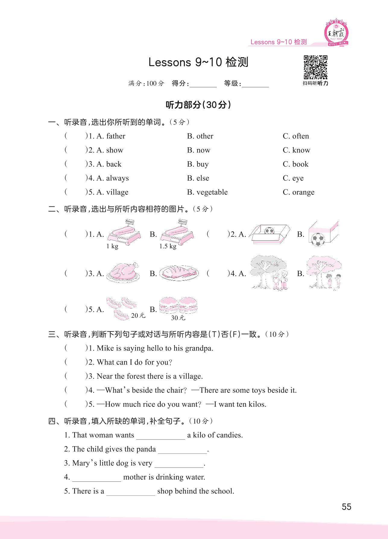 2023上册五年级英语科普版 Lessons 9~10 检测
