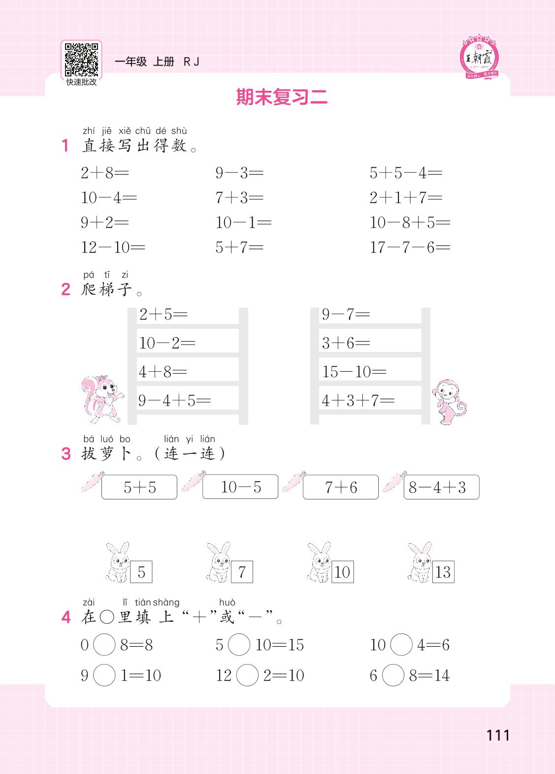 2023上册一年级数学人教版 期末复习二(计算专练)