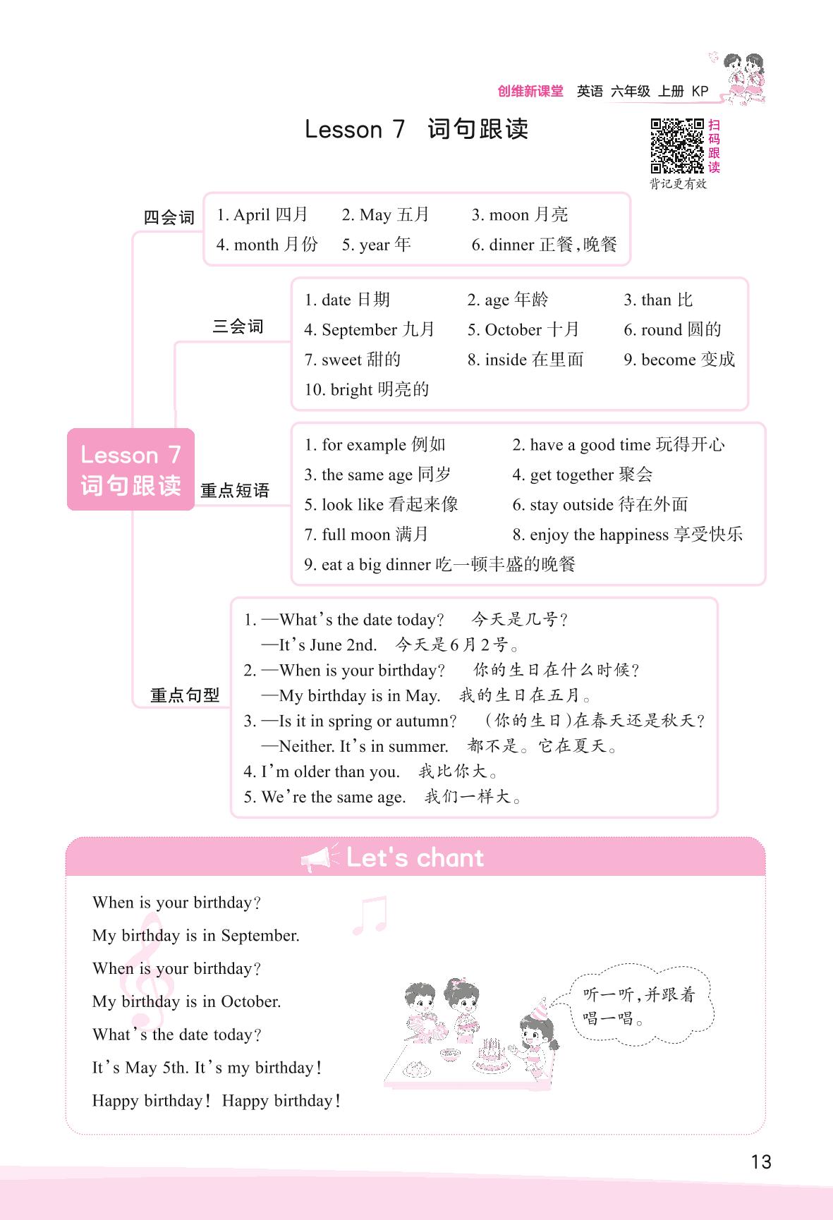 2023上册六年级英语科普版 Lesson 7 词句跟读