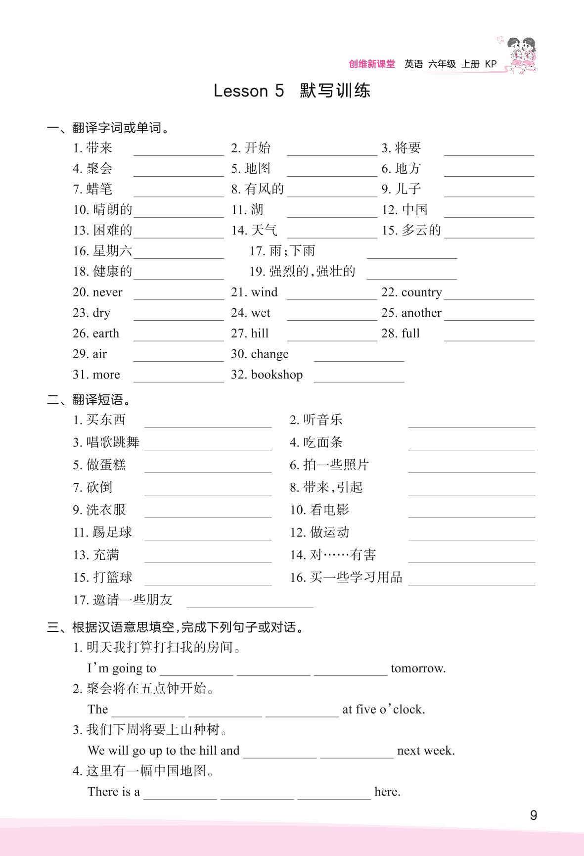 2023上册六年级英语科普版 Lesson 5 默写训练