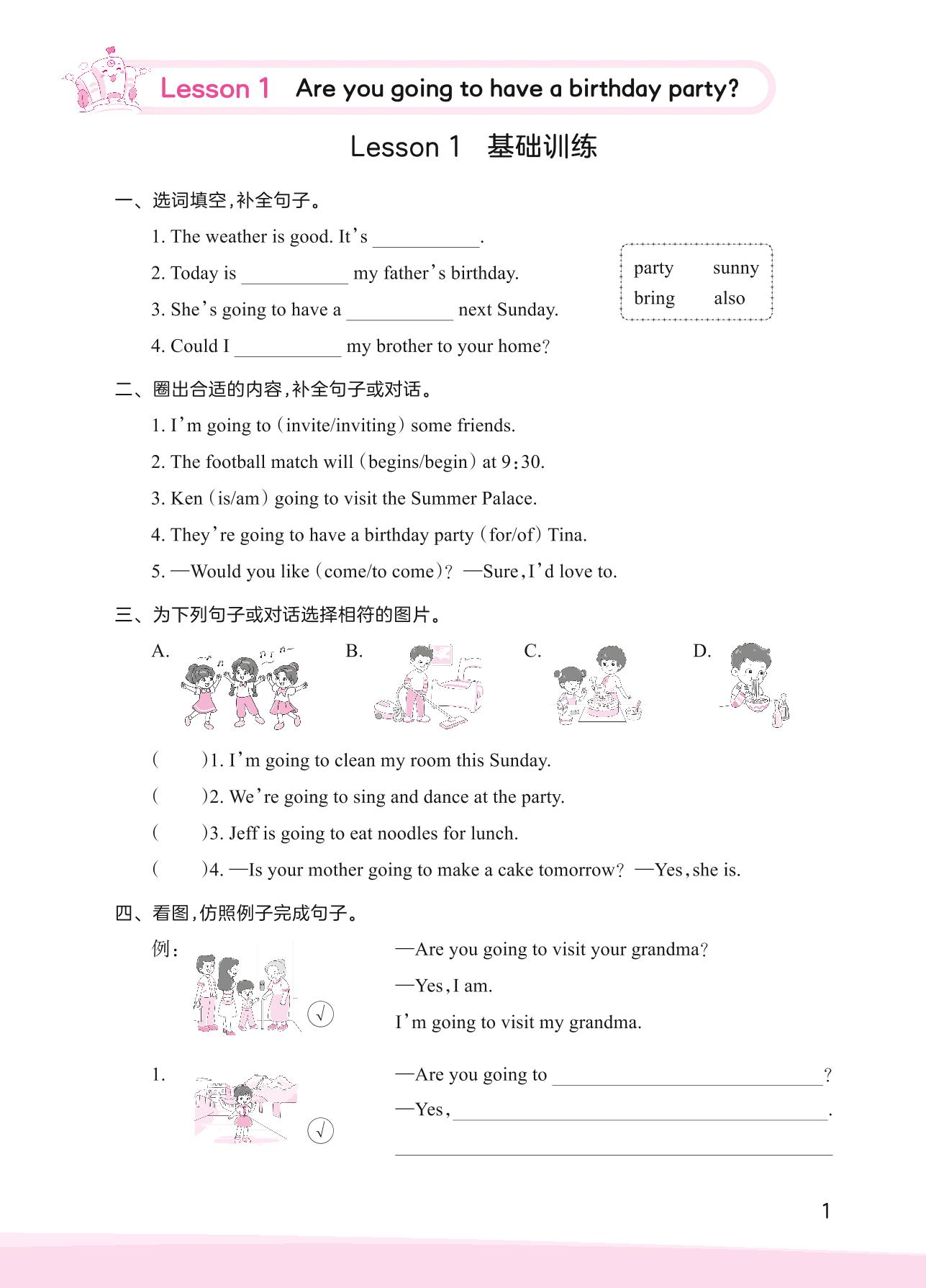 2023上册六年级英语科普版 Lesson 1 基础训练