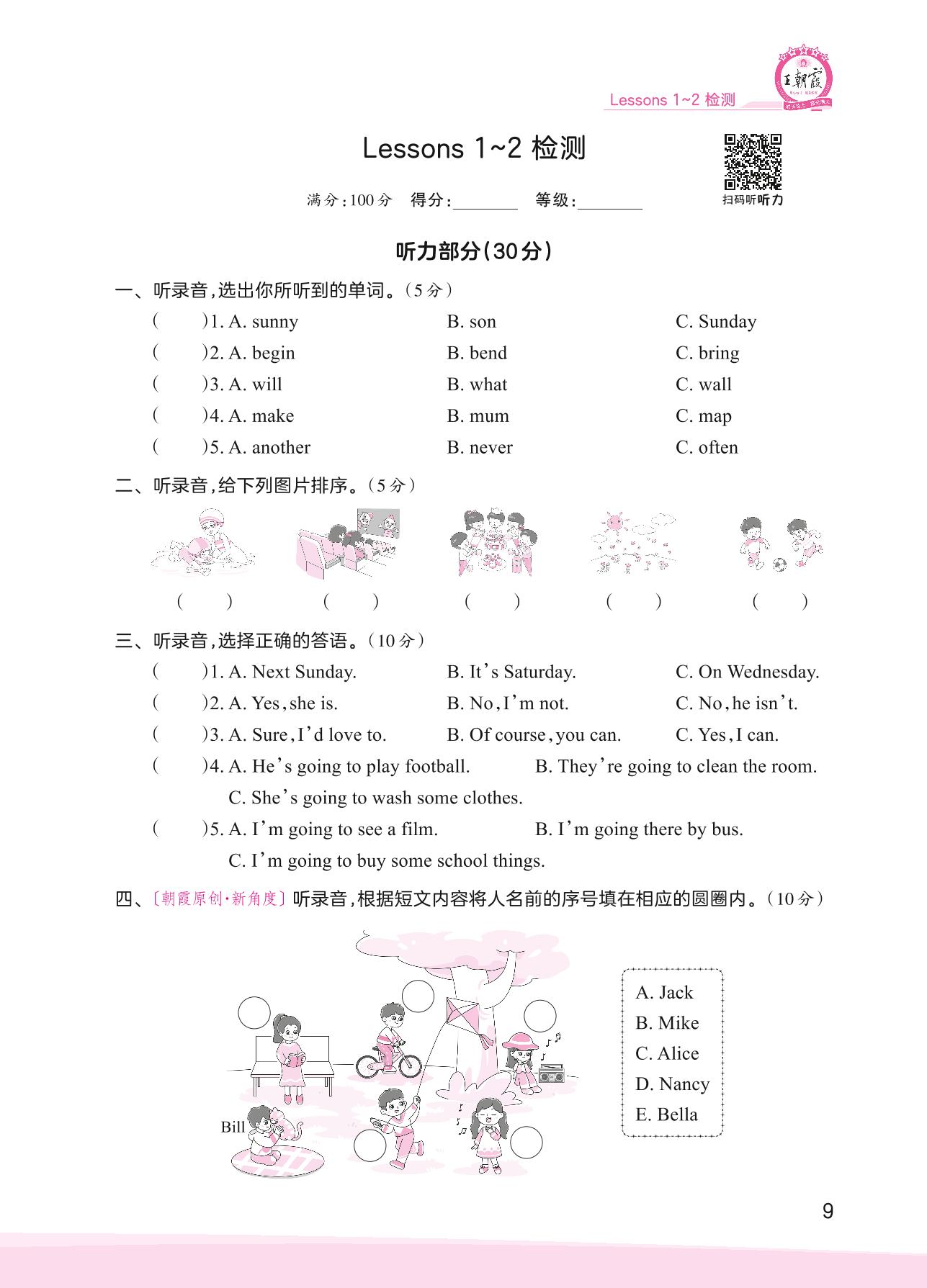 2023上册六年级英语科普版 Lessons 1~2 检测