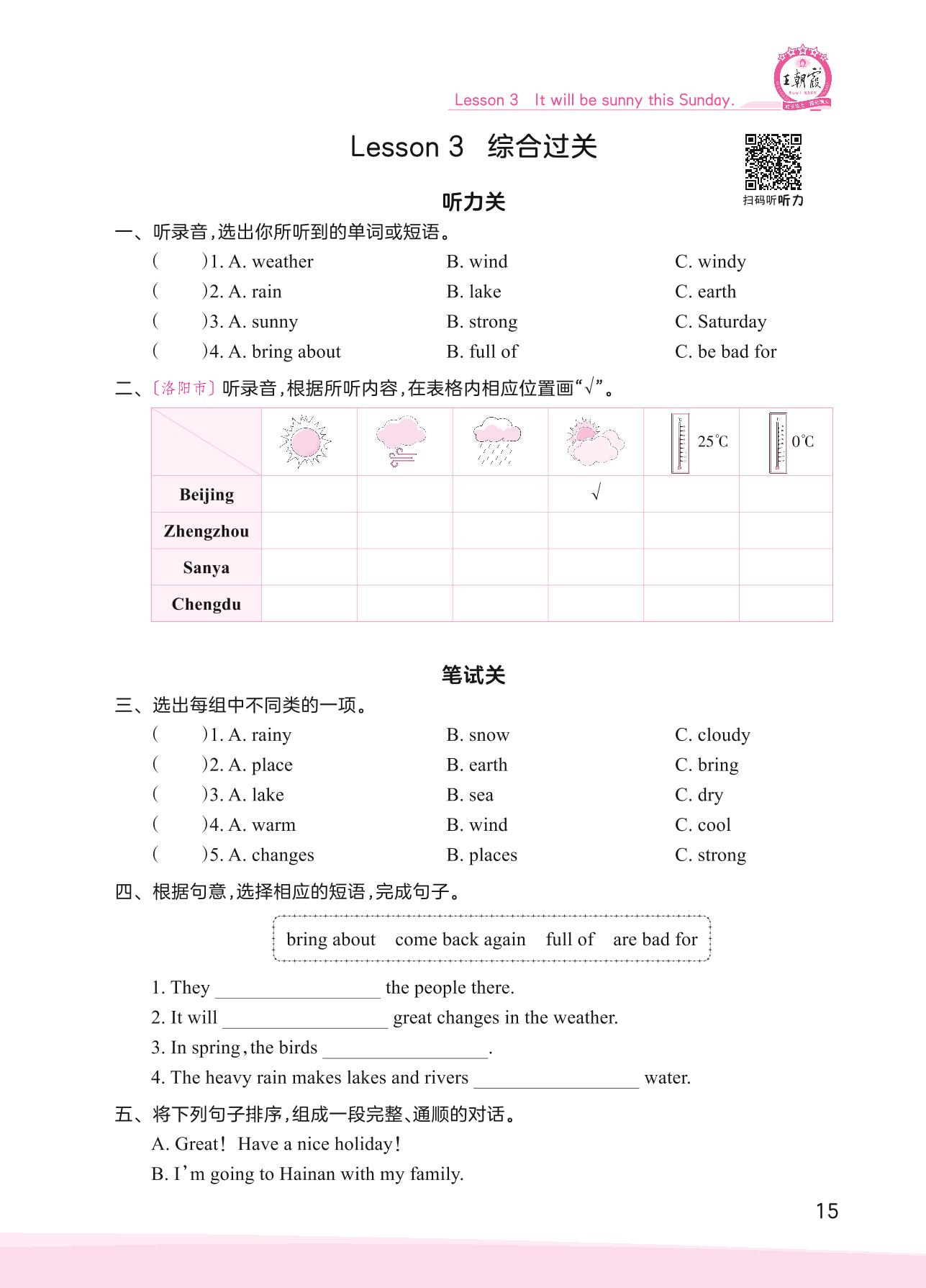2023上册六年级英语科普版 Lesson 3 综合过关