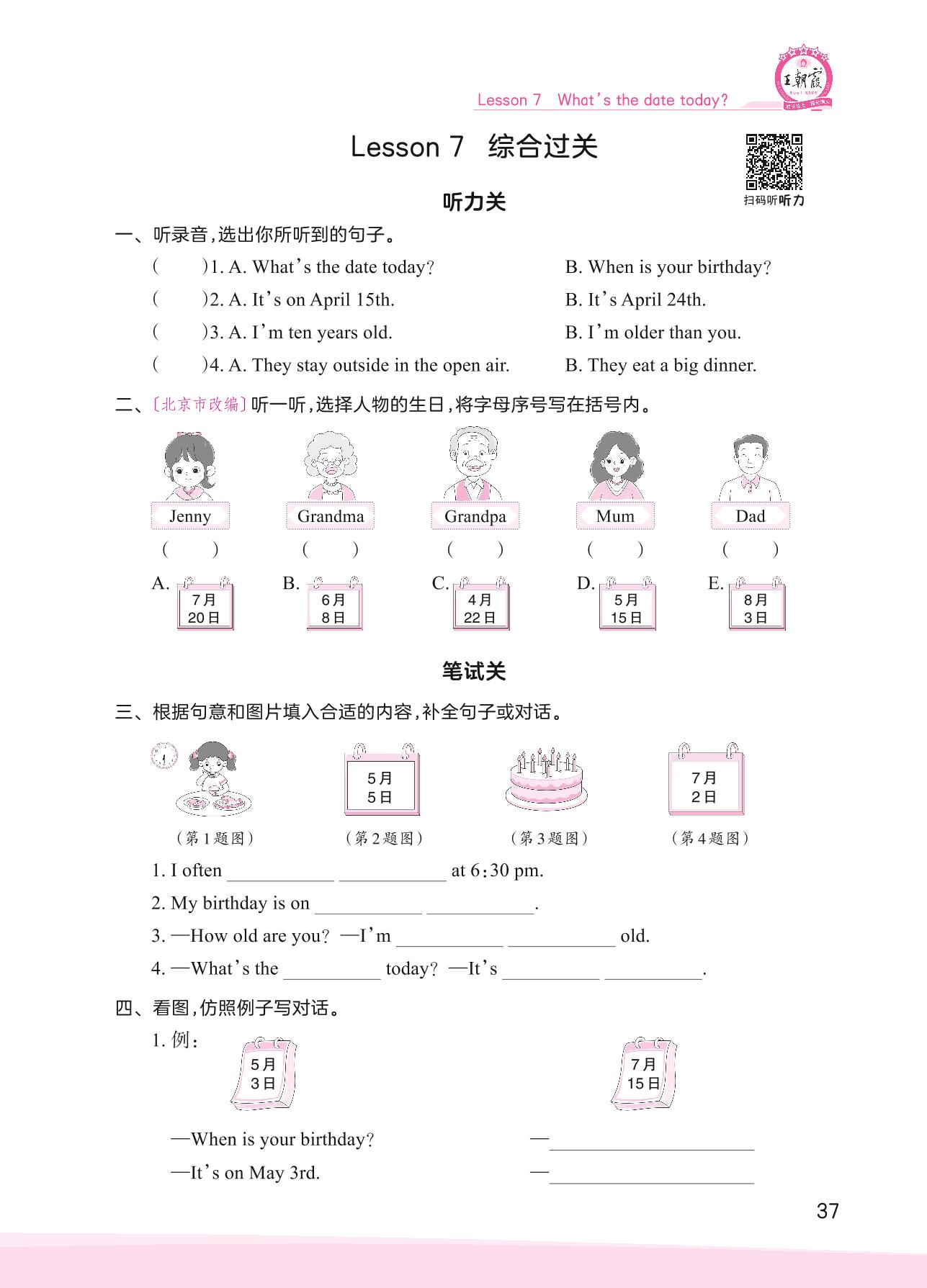 2023上册六年级英语科普版 Lesson 7 综合过关