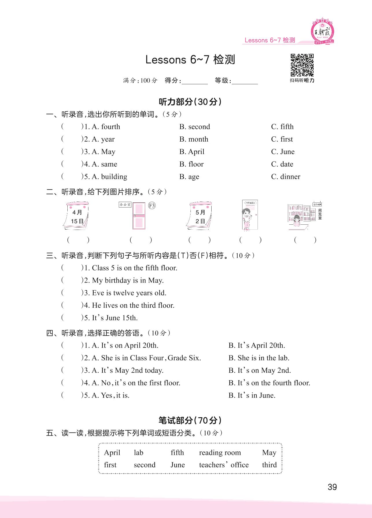2023上册六年级英语科普版 Lessons 6~7 检测