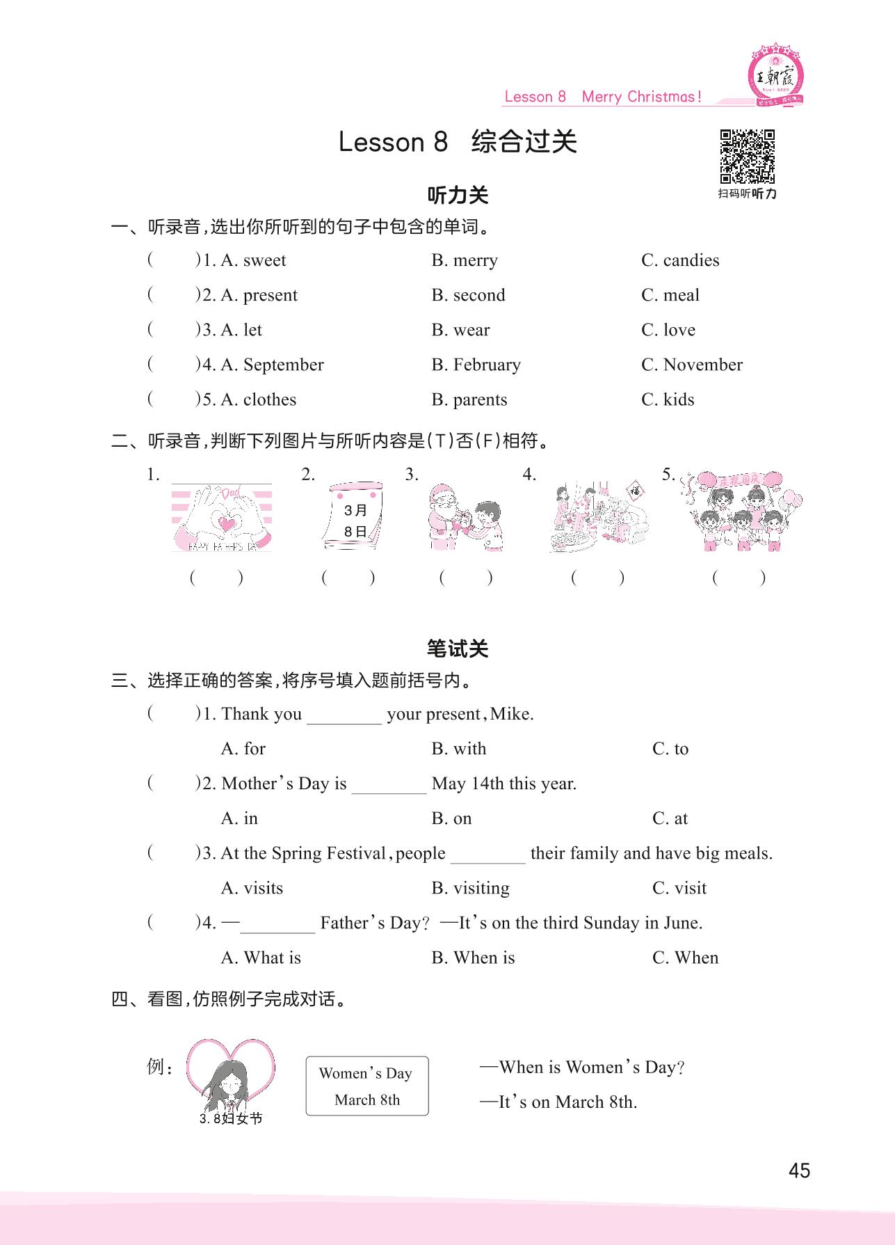 2023上册六年级英语科普版 Lesson 8 综合过关