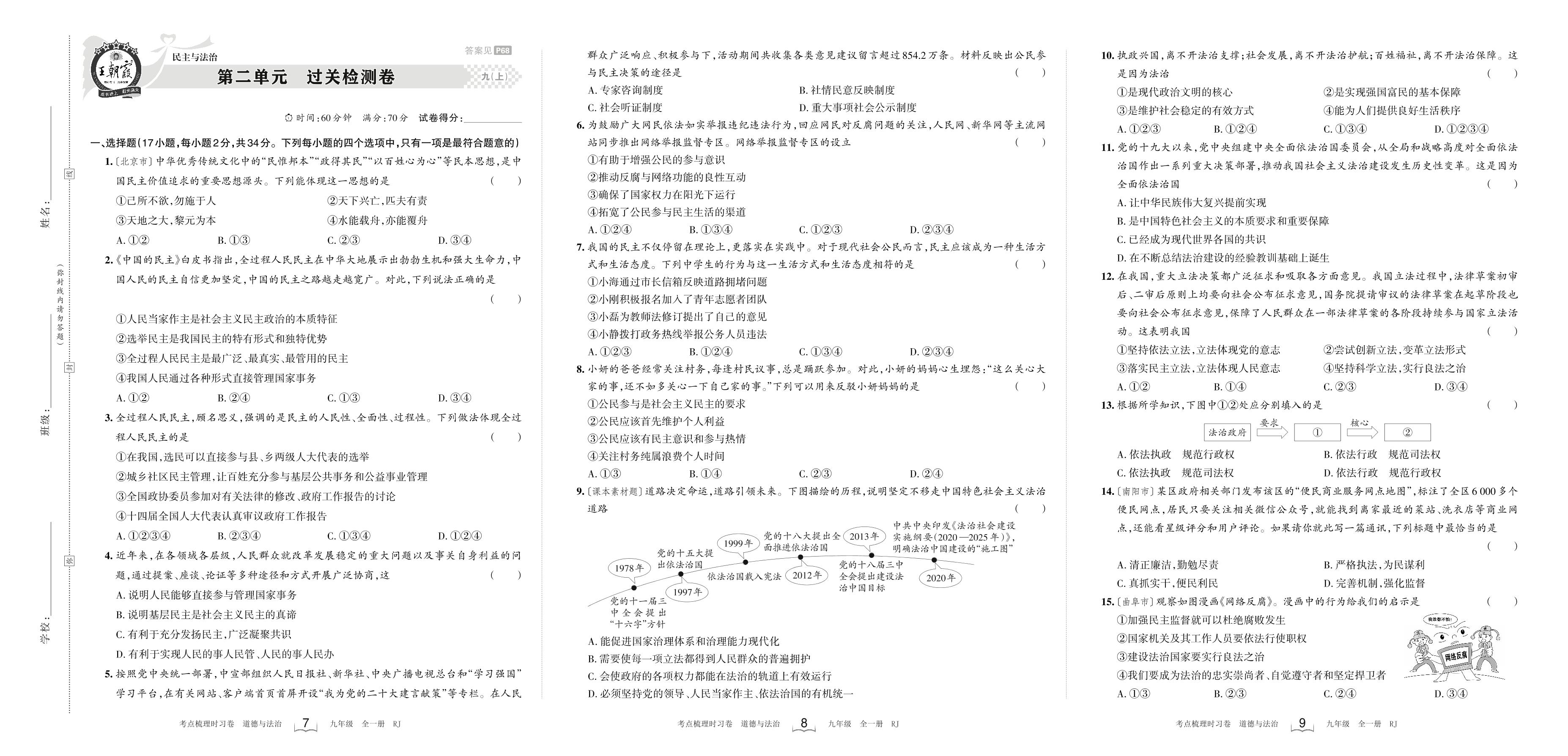2023上册九年级道德与法治人教版 第二单元 过关检测卷(8月版)