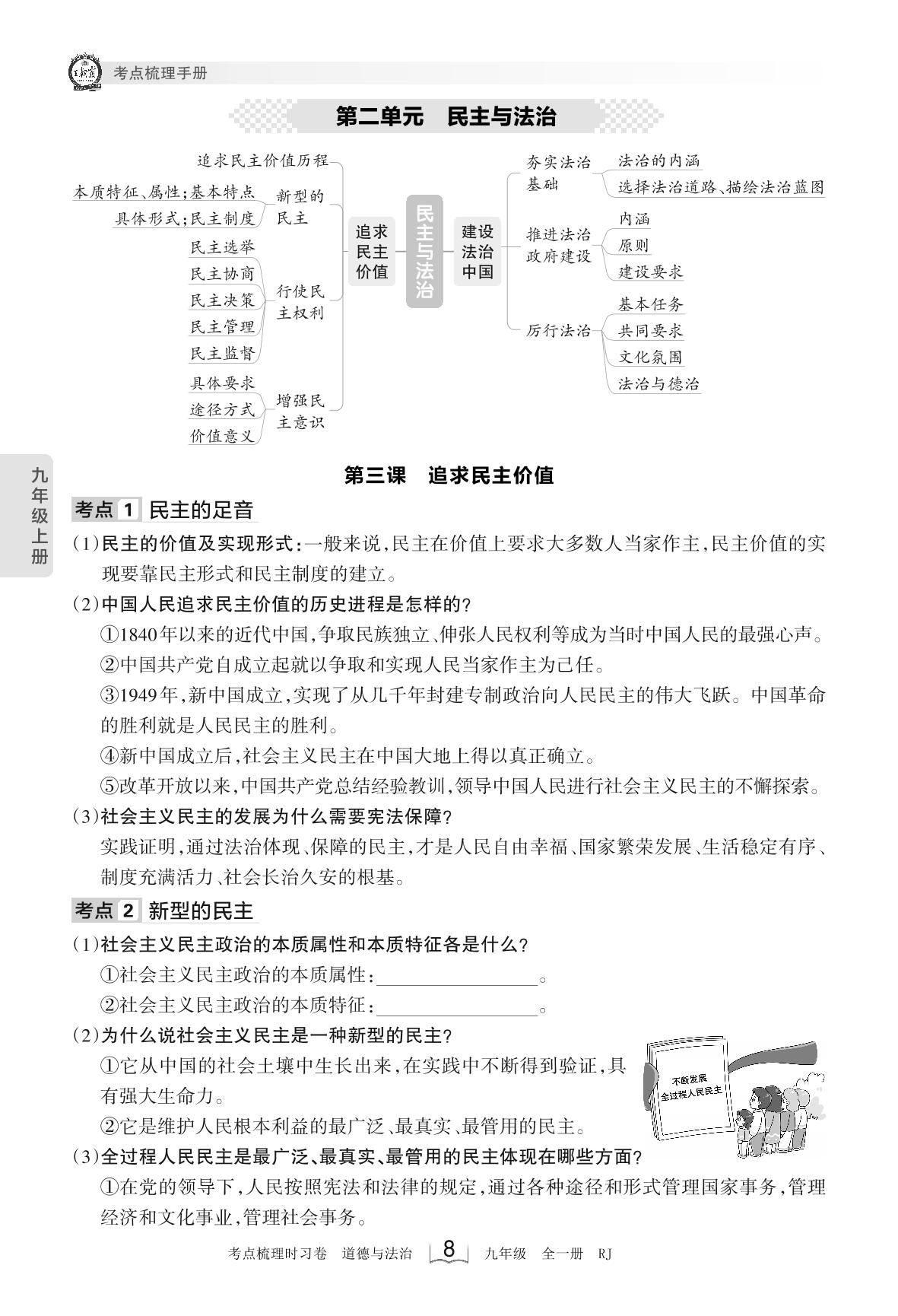 2023上册九年级道德与法治人教版 考点梳理手册——第二单元 民主与法治(8月版)