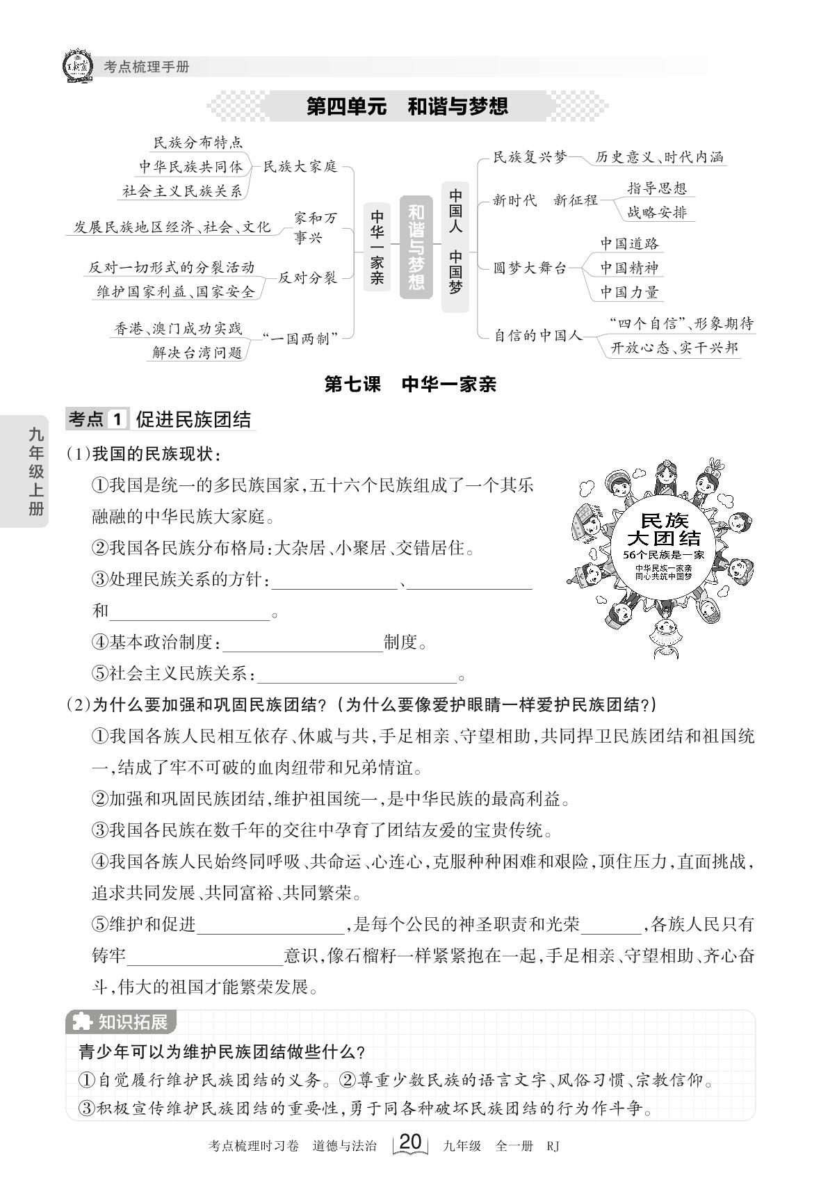 2023上册九年级道德与法治人教版 考点梳理手册——第四单元 和谐与梦想(8月版)
