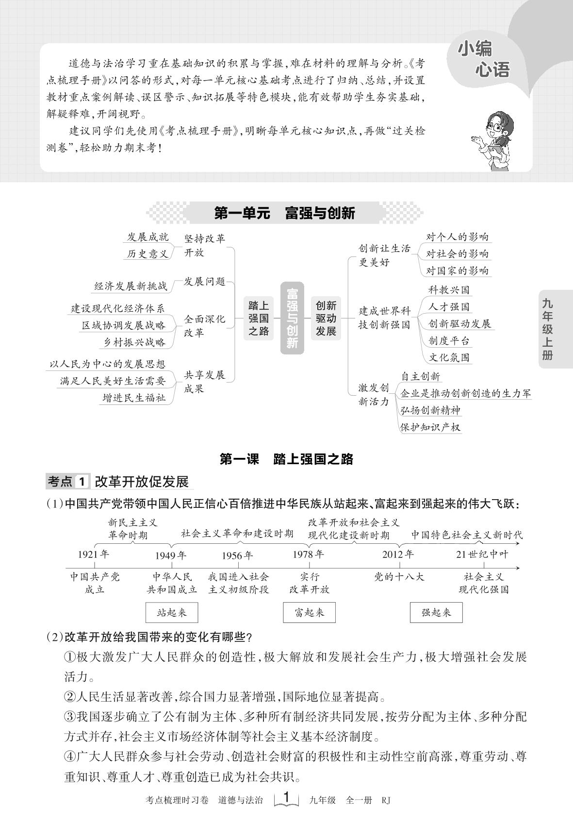 2023上册九年级道德与法治人教版 考点梳理手册——第一单元 富强与民主(8月版)