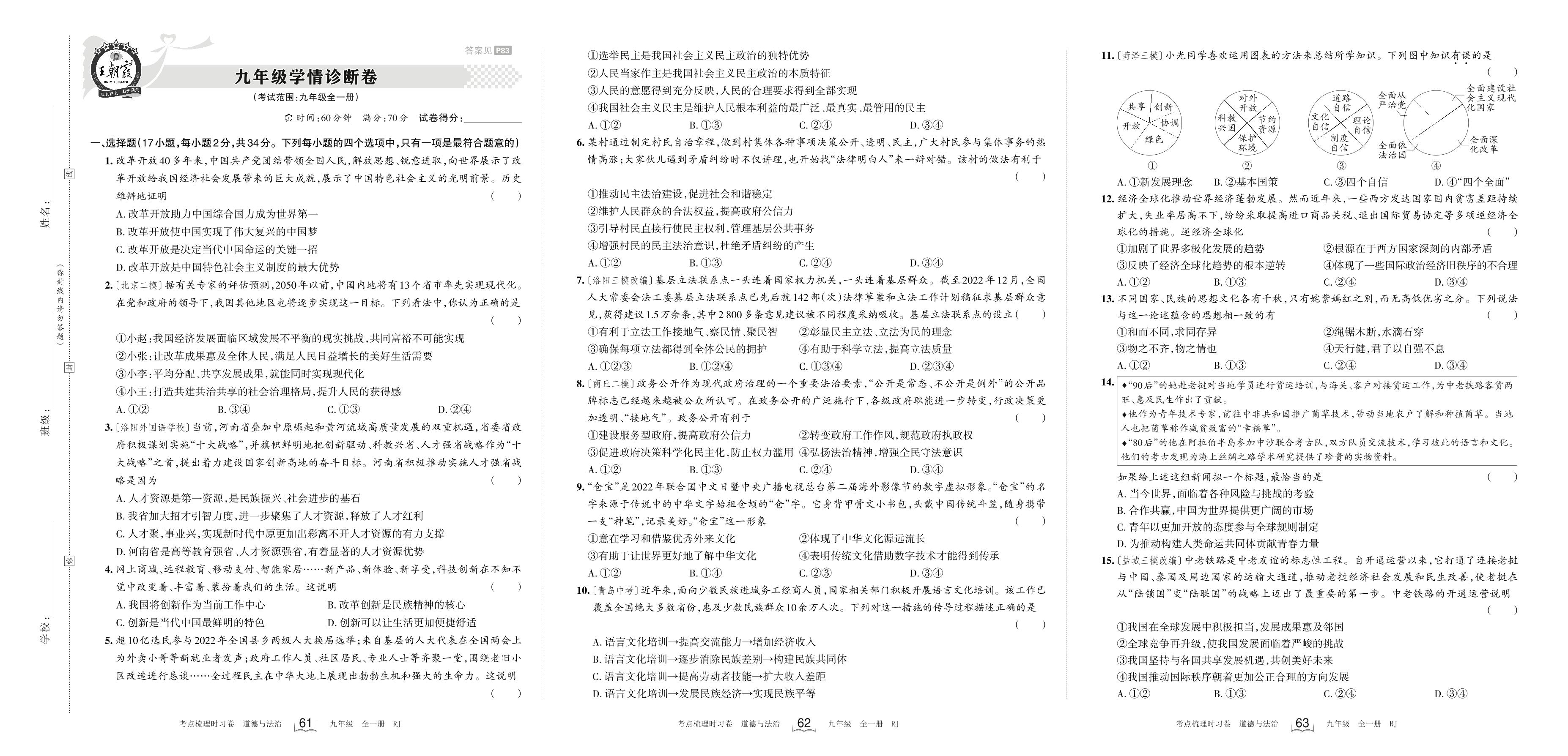 2024下册九年级道德与法治人教版 九年级学情诊断卷(8月版)