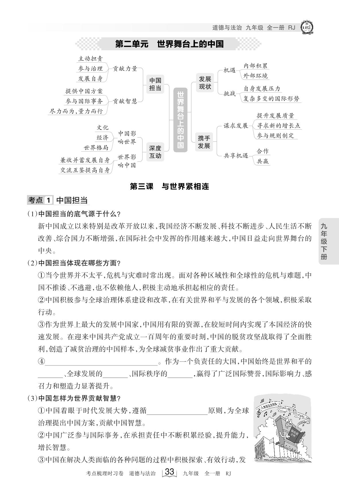 2024下册九年级道德与法治人教版 考点梳理手册——第二单元 世界舞台上的中国(8月版)