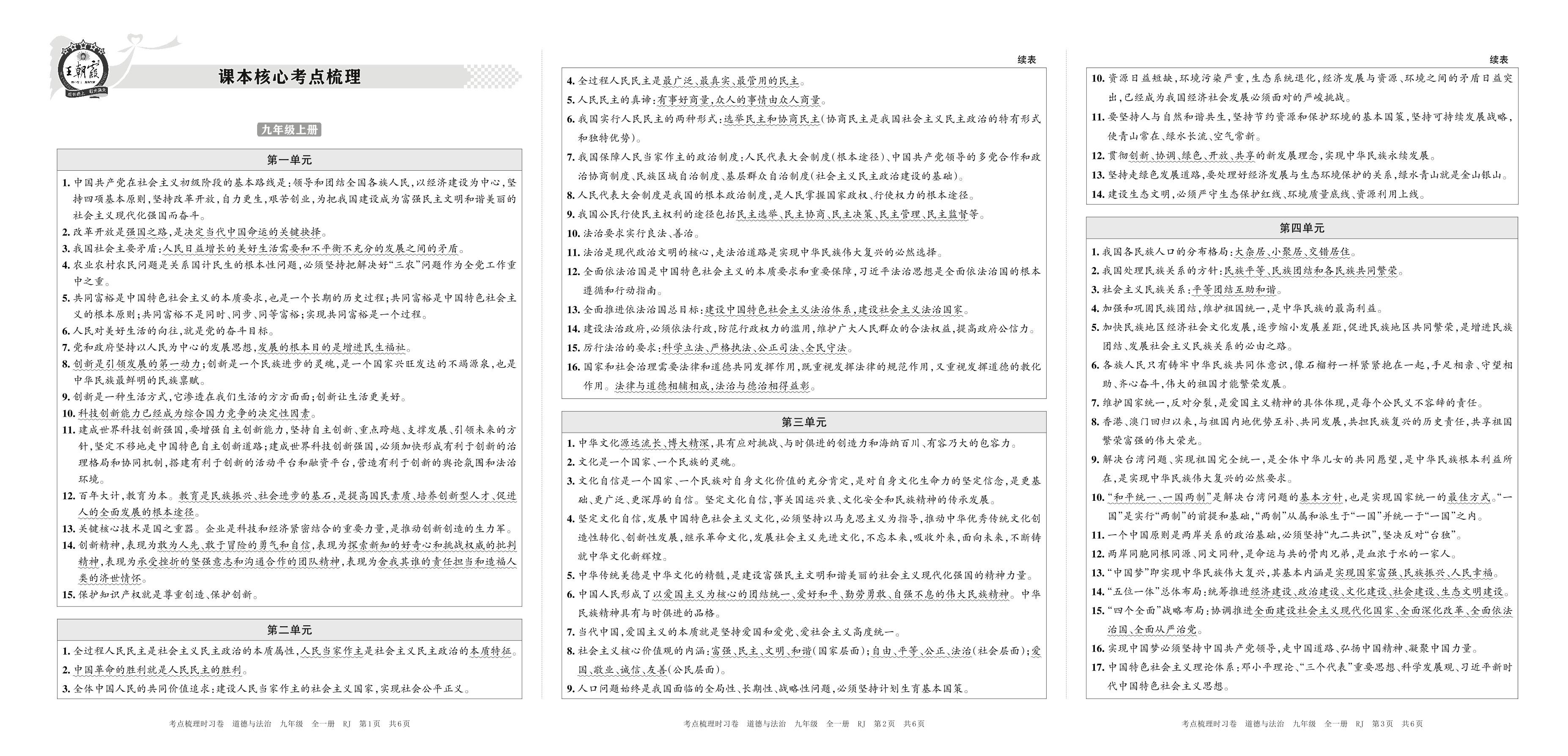 2023-2024学年九年级道德与法治人教版 本课核心考点梳理(8月版)