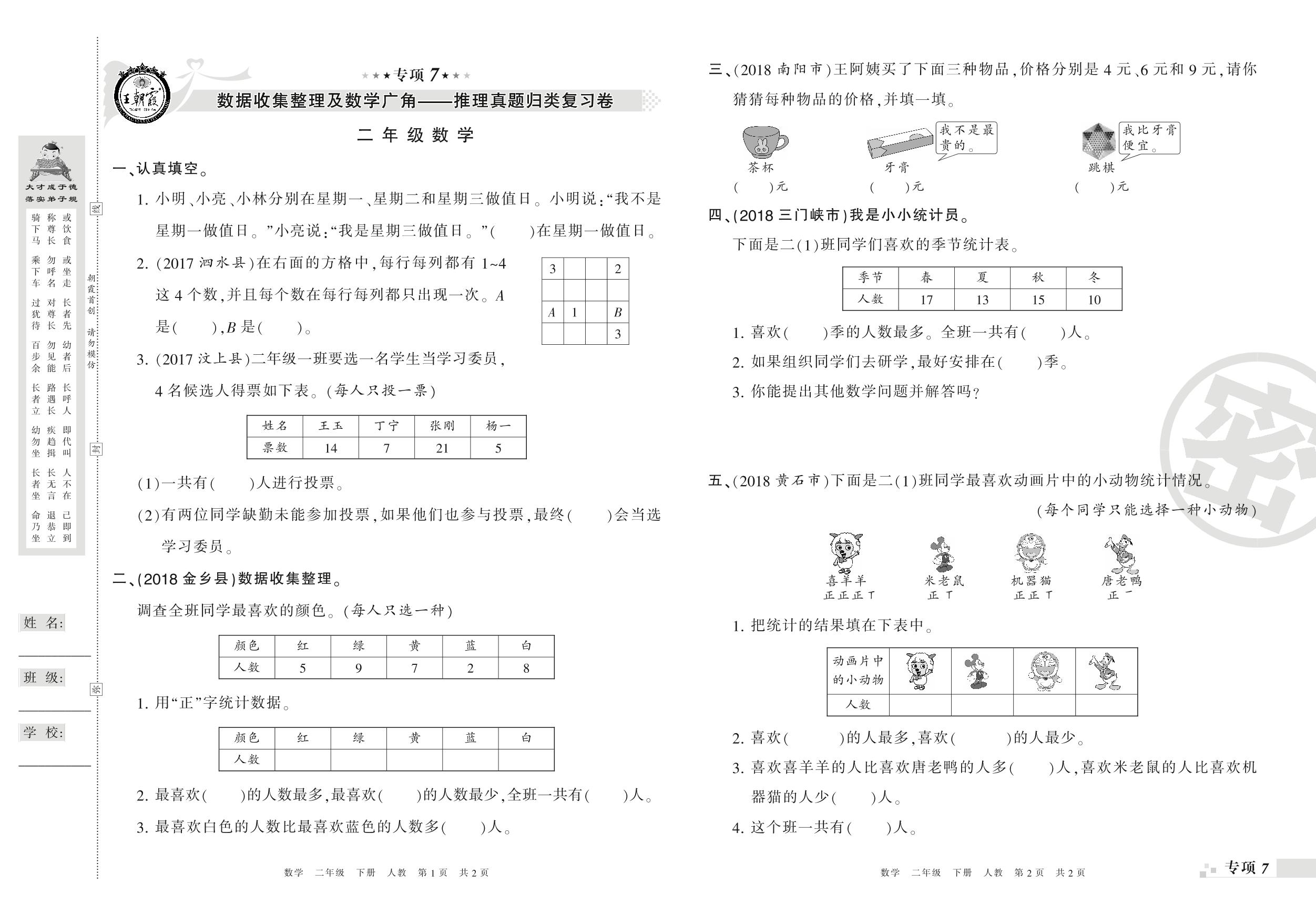 王朝霞期末专项卷——数据收集整理及数学广角:推理、图形的运动及克和千克真题归类复习卷二年级下册数学(人教版)_R21080395653【0】
