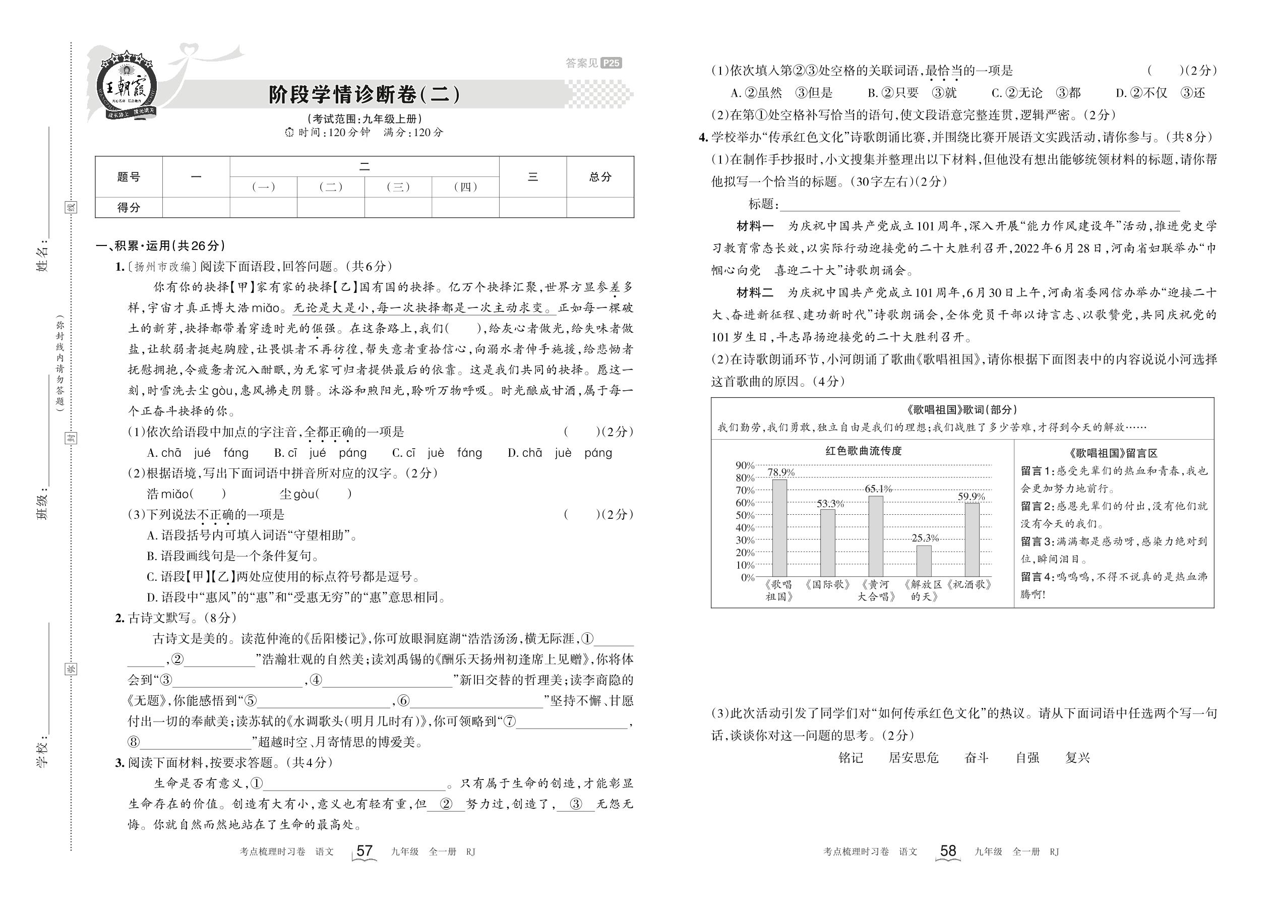 2023上册九年级语文人教版 阶段学情诊断卷(二)(8月版)