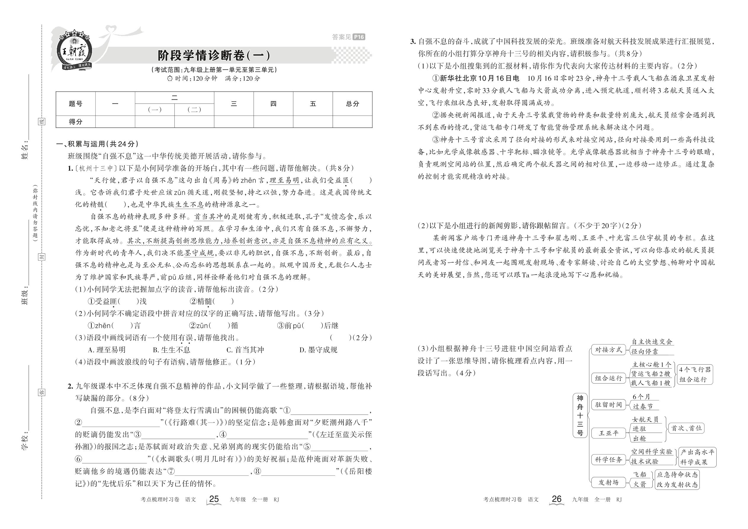 2023上册九年级语文人教版 阶段学情诊断卷(一)(8月版)