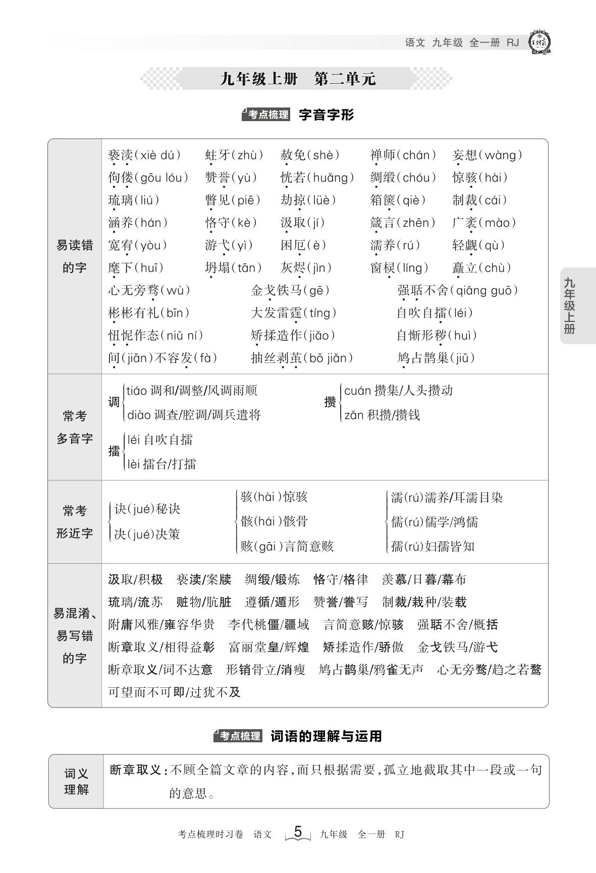 2023上册九年级语文人教版 考点梳理手册——九年级上册 第二单元(8月版)
