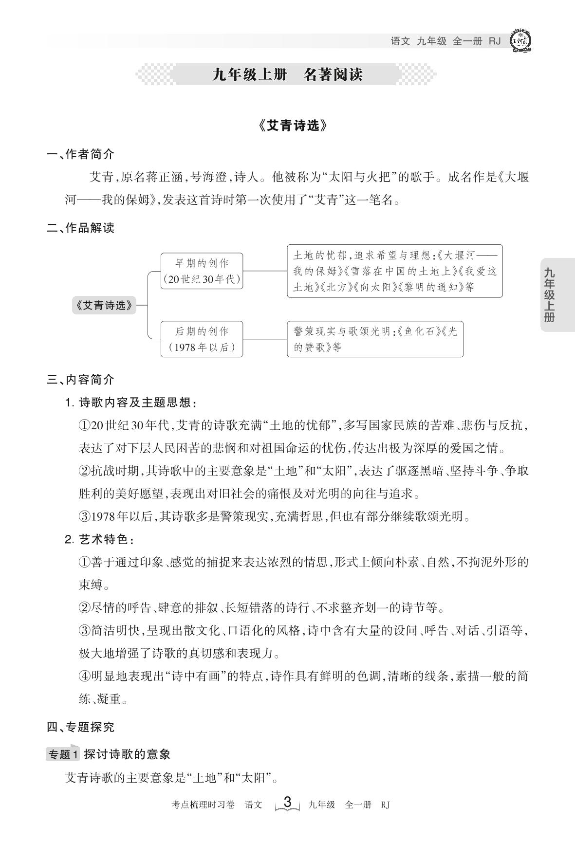 2023上册九年级语文人教版 考点梳理手册——九年级上册 名著阅读《艾青诗选》(8月版)