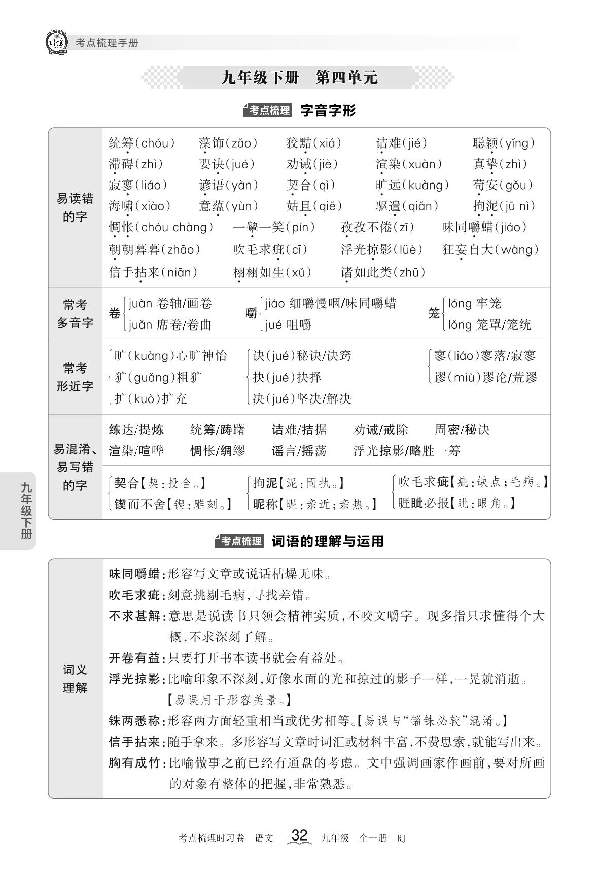 2024下册九年级语文人教版 考点梳理手册——九年级下册 第四单元(8月版)