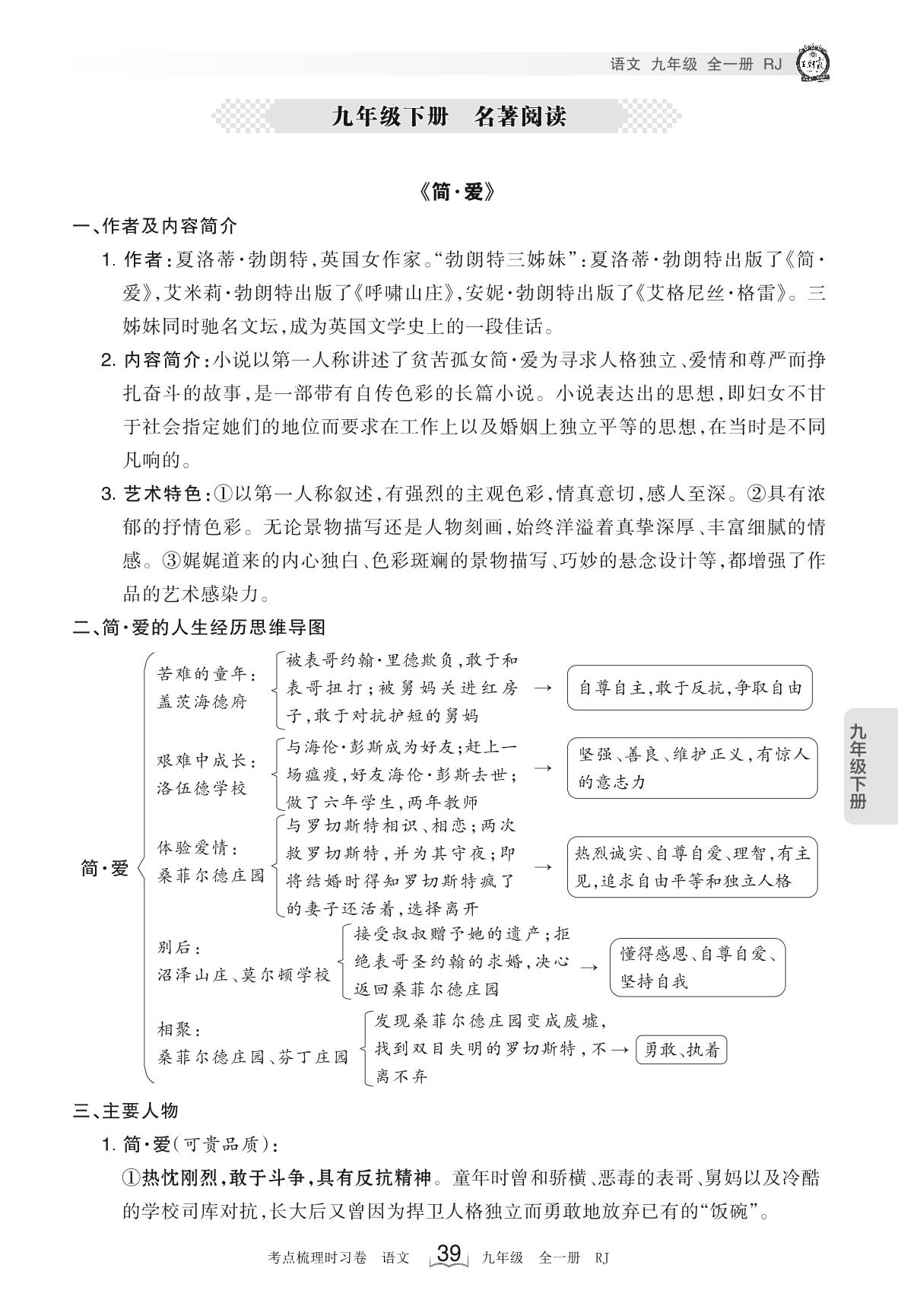 2024下册九年级语文人教版 考点梳理手册——九年级下册 名著阅读《简·爱》(8月版)