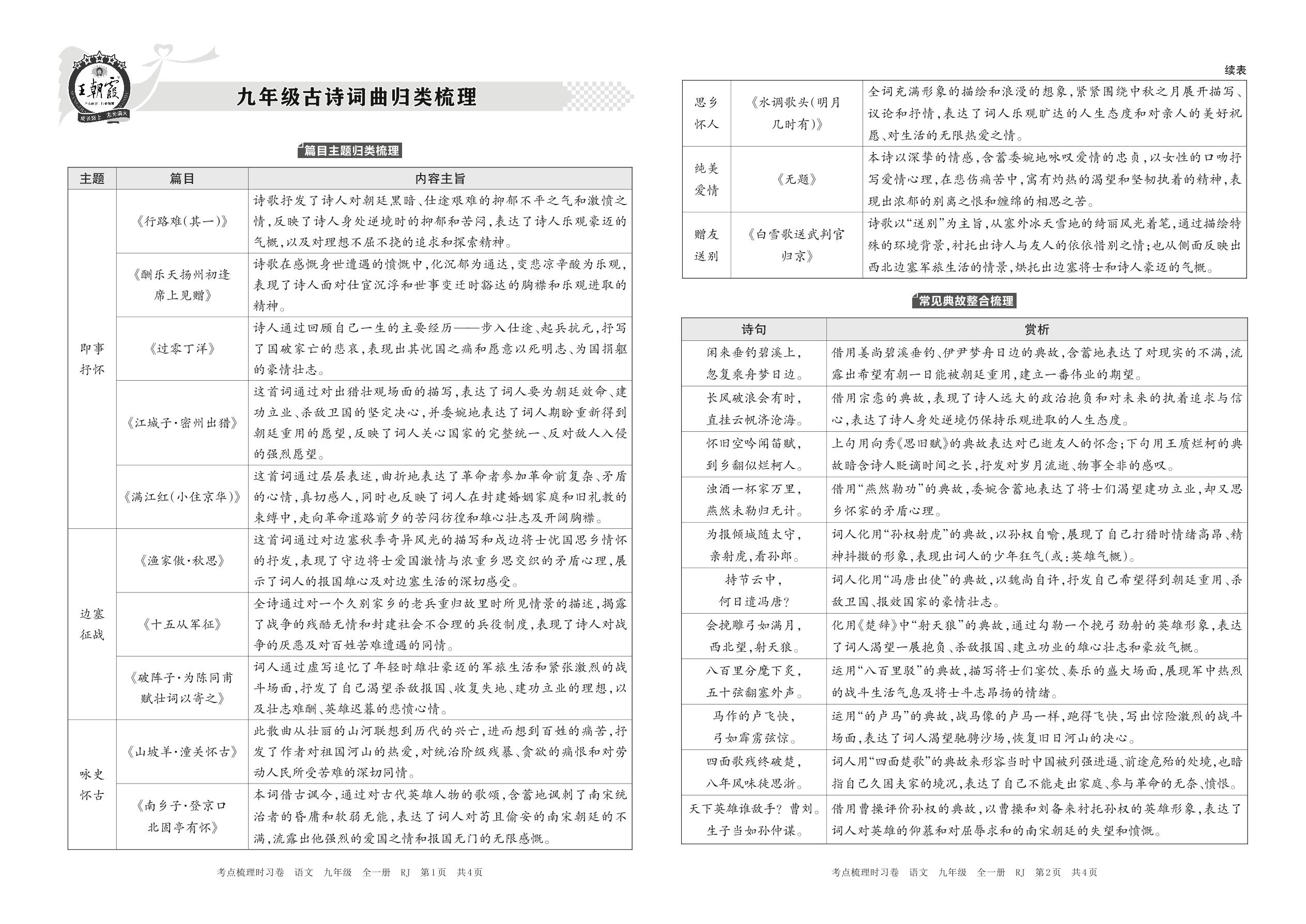 2023-2024学年九年级语文人教版 九年级古诗词曲归类梳理(8月版)