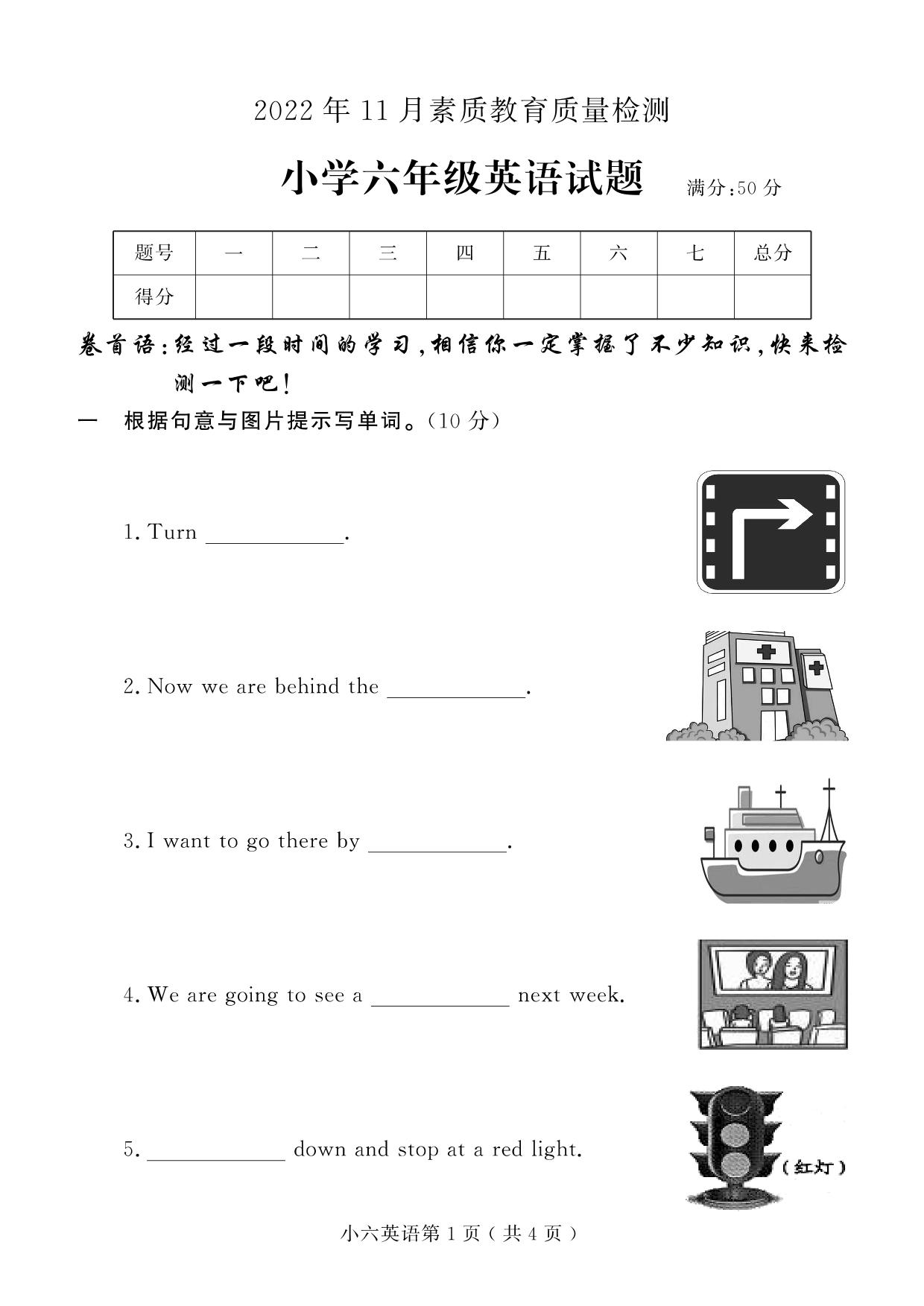山东省菏泽市曹县2022-2023学年第一学期期中素质教育质量检测试题六年级英语(人教PEP版)【无听力音频】