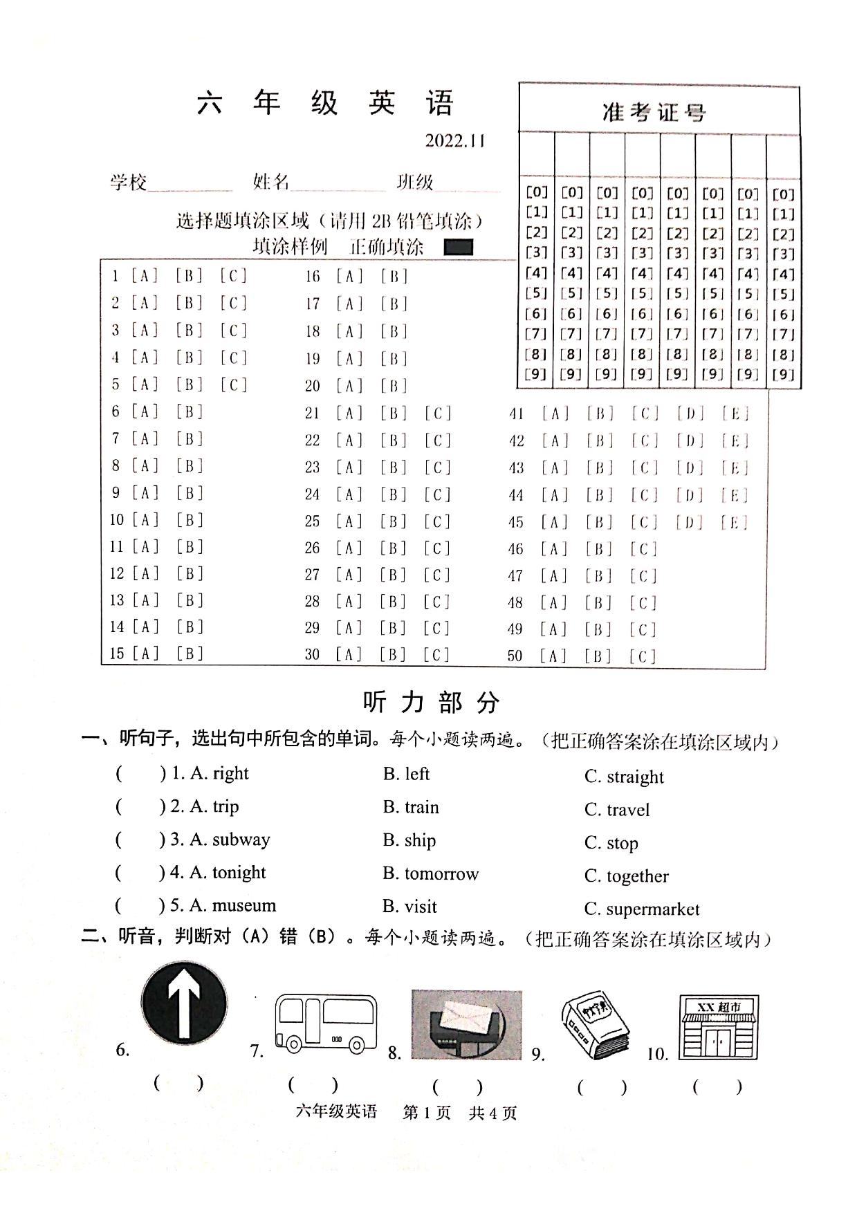 山东省菏泽市牡丹区2022-2023学年上学期期中考试试题六年级英语(人教PEP版)【无听力音频】