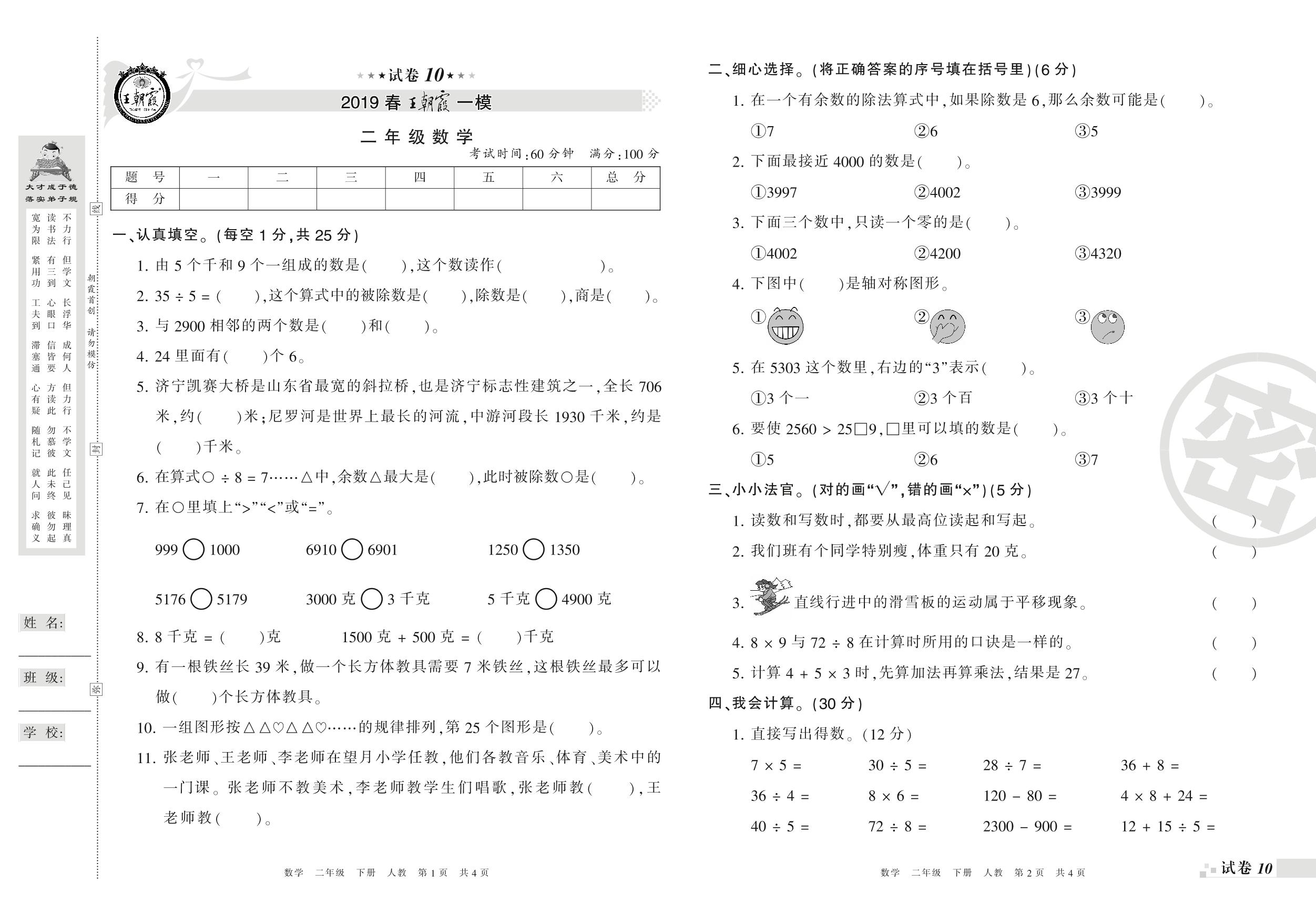 王朝霞期末模拟卷二年级下册数学(人教版)_R21080395753【10】