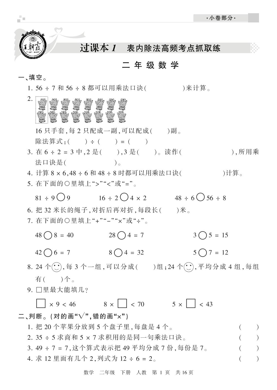 王朝霞期末过课本二年级下册数学(人教版)_R21080395809【0】